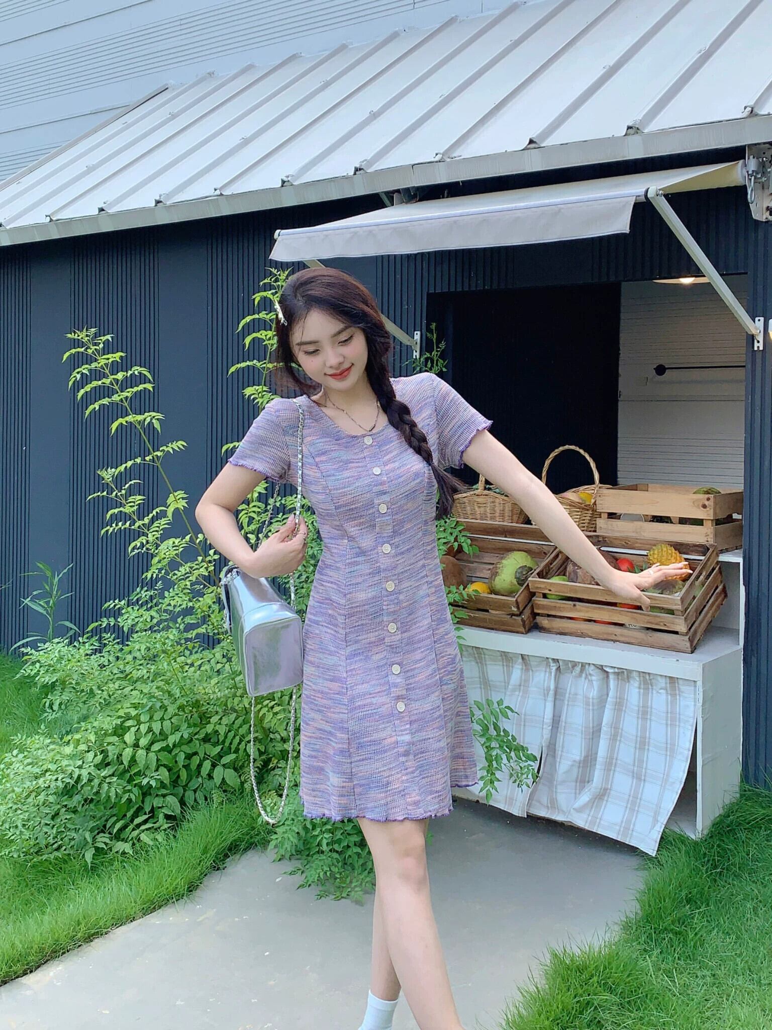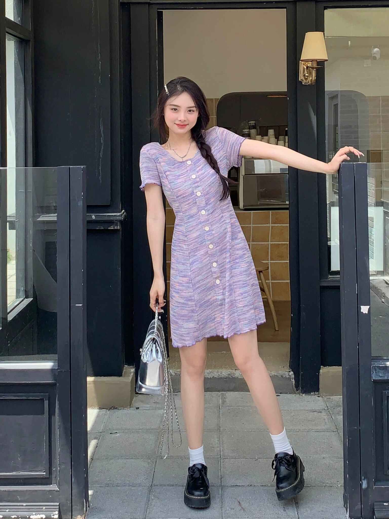 プラスサイズの婦人服 2023 脂肪姉妹夏の新スタイルフレンチレトロな気質シングルブレストショートスカートストライプニットドレス 大きめサイズ サマー 夏物 8884183663944448