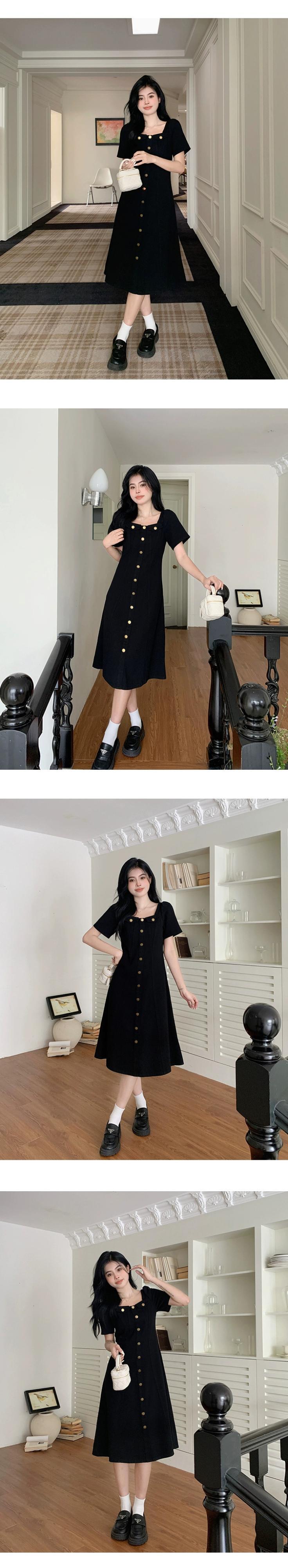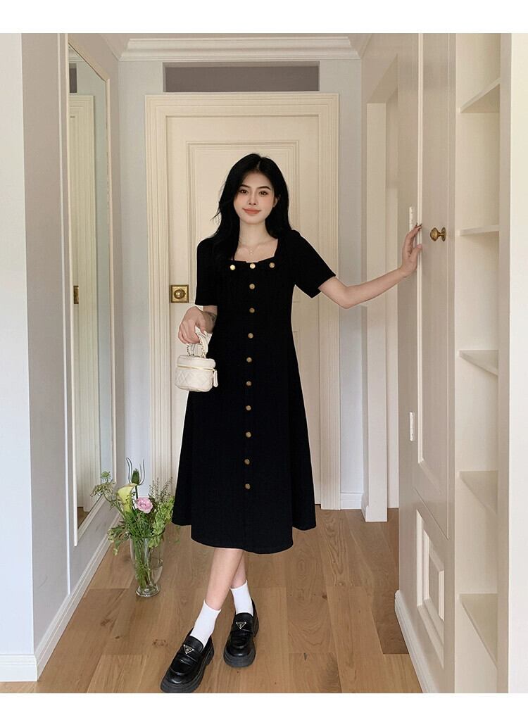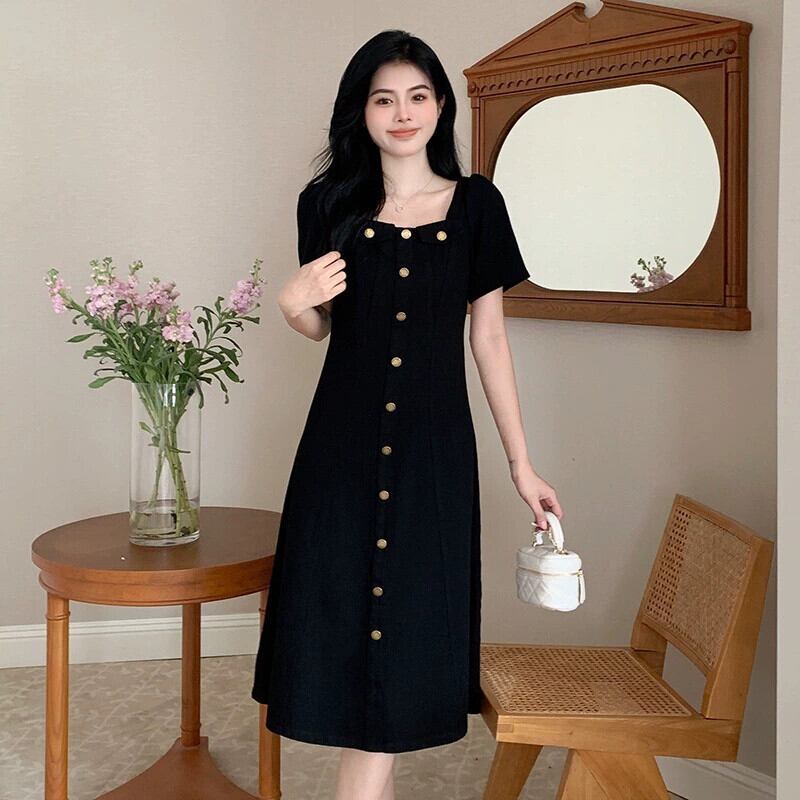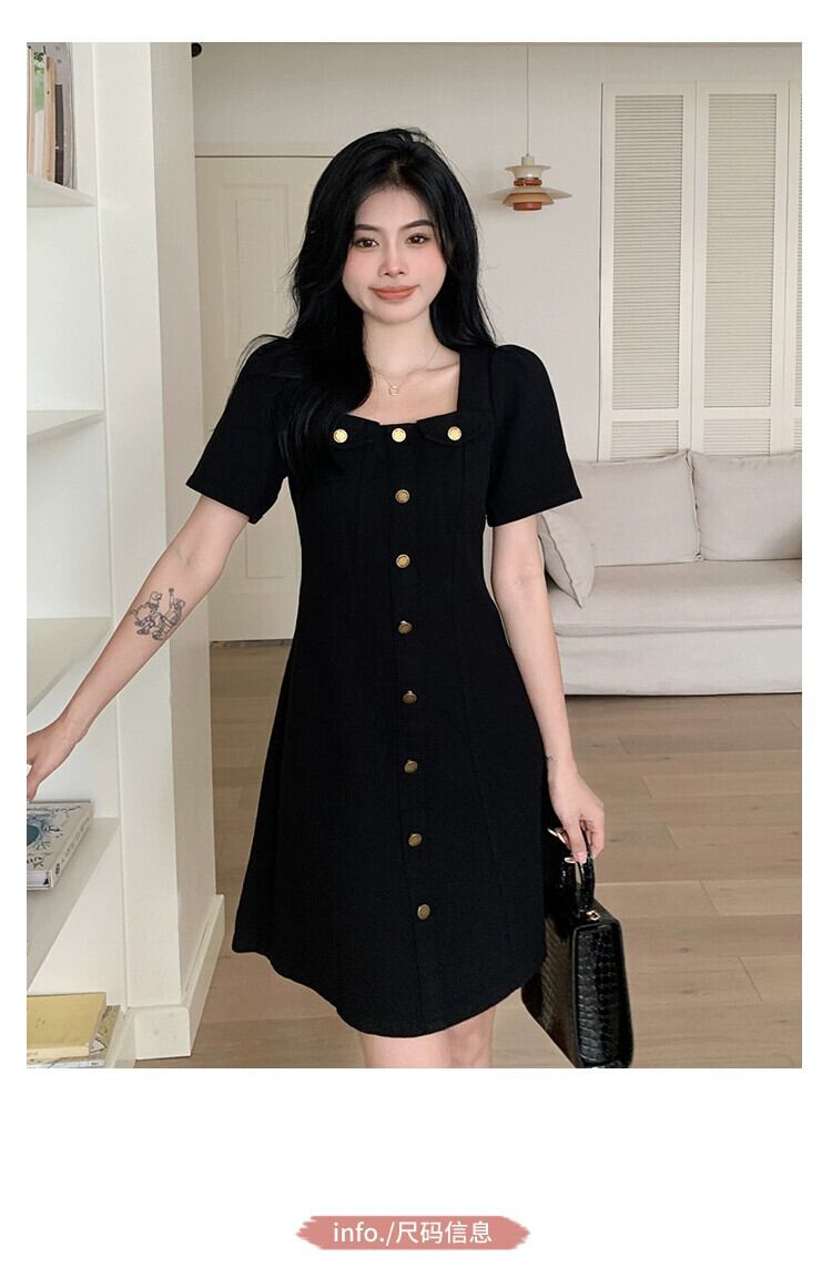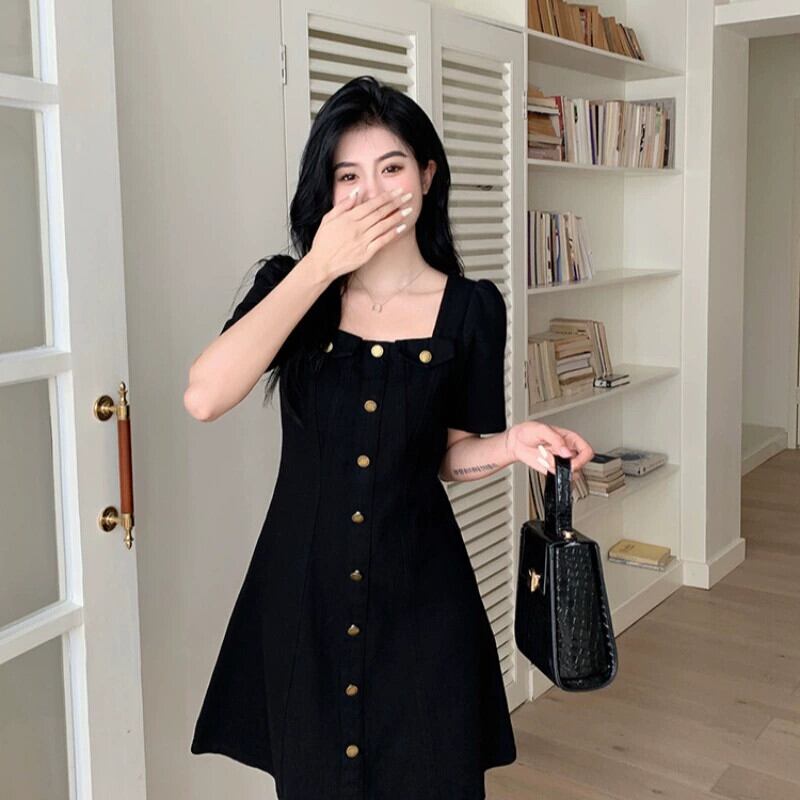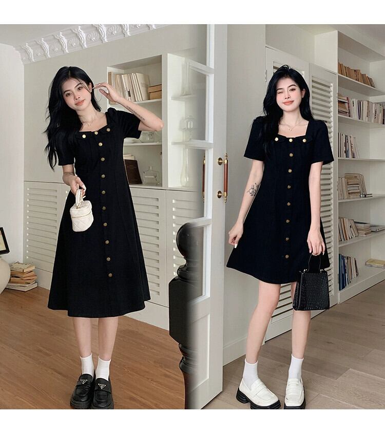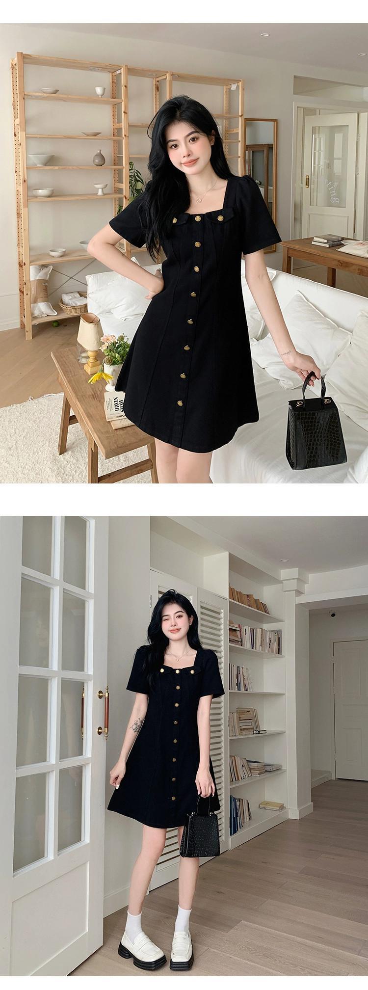 プラスサイズの婦人服 2023 流行の夏の新しいファットシスターデニム親友ドレスロングとショートスカートスクエアカラーヘップバーンスタイルドレス 大きめサイズ サマー 夏物 スクウェア 8884168335692222