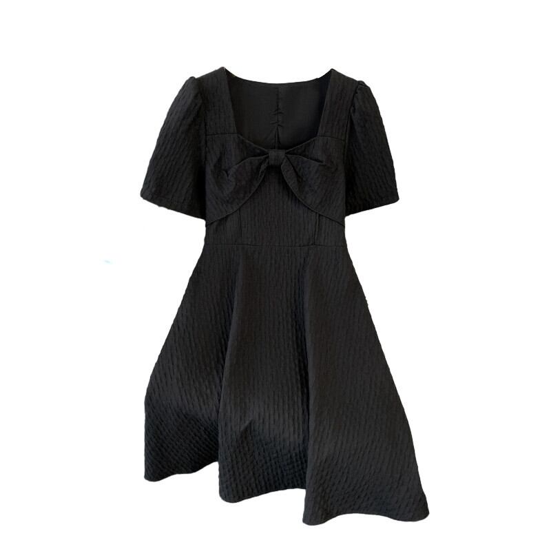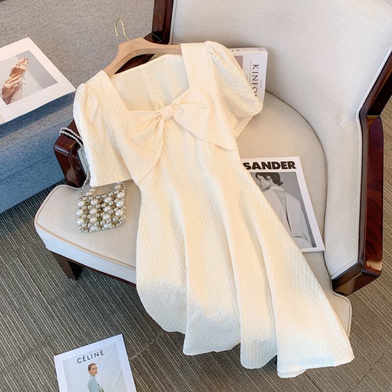 プラスサイズの婦人服 2023 脂肪姉妹夏の新フレンチミッドレングススカートデザイン弓スリム半袖ドレス リボン 大きめサイズ サマー 夏物 8884163107262593