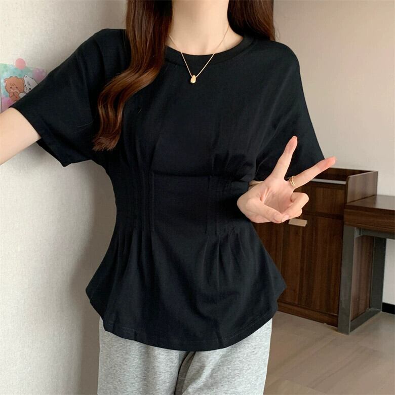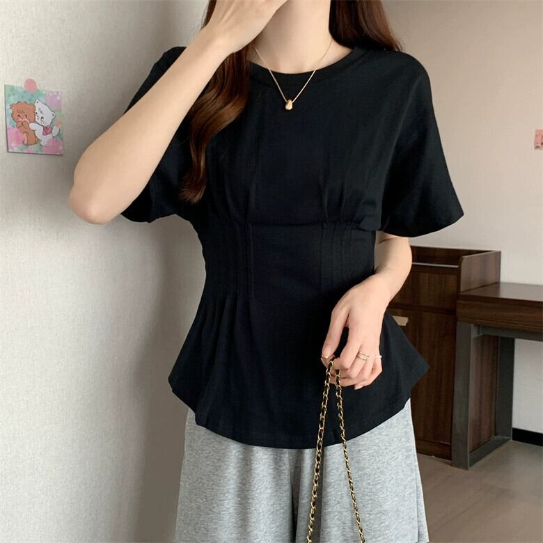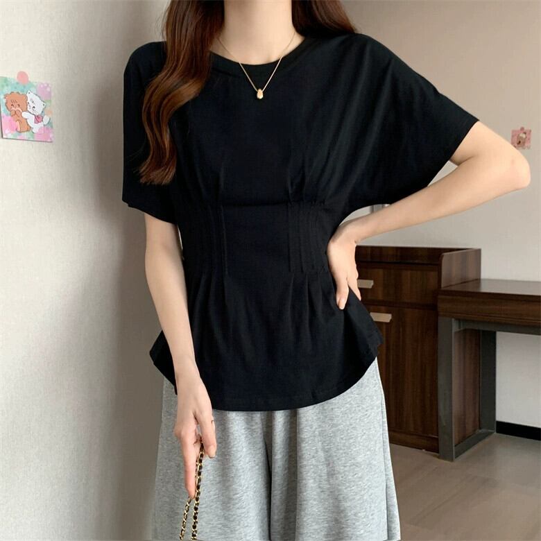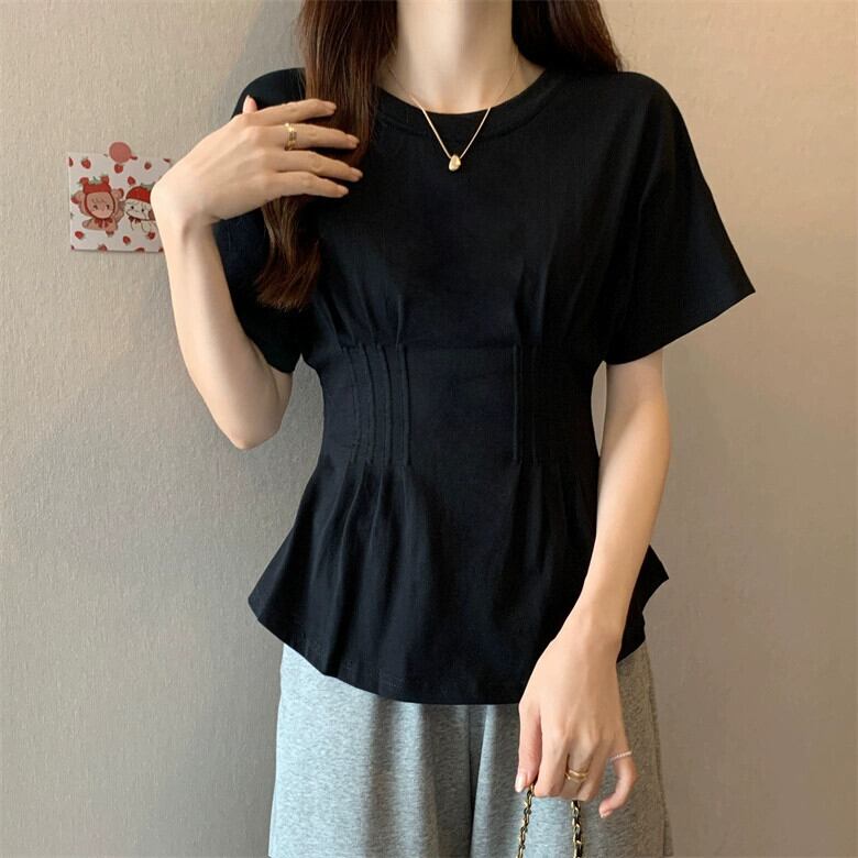 プラスサイズの女性の 2023 夏服ファットスタイルカジュアル気質痩身 Tシャツデザイン肉をカバーするウエストを締めるトップ 大きめサイズ サマー 夏物 8884135919427050