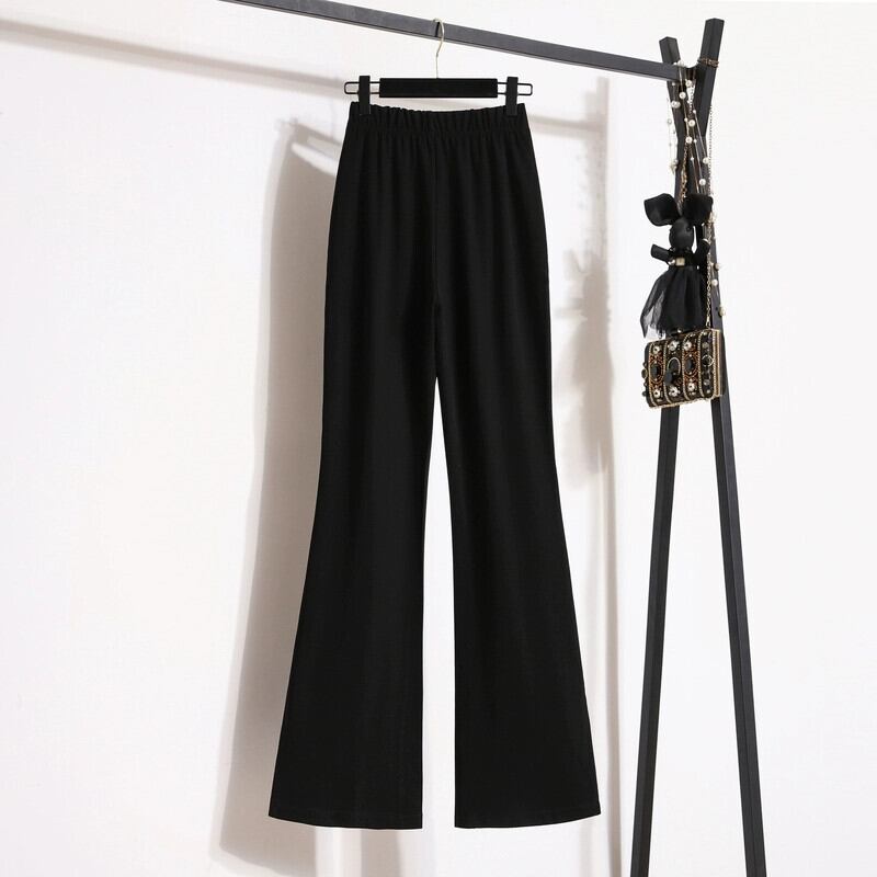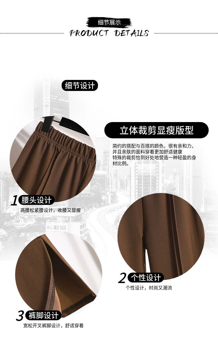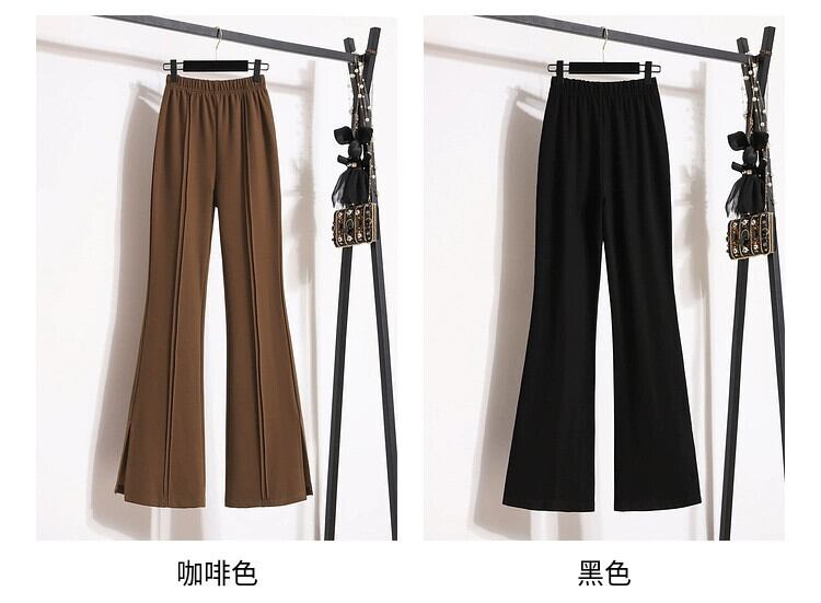 プラスサイズの婦人服 2023 脂肪姉妹秋の新スタイルドレープスリット小さな高弾性ワイドレッグパンツスーツパンツベルボトム エラスティック 伸縮 大きめサイズ オータム 秋物 ワイドパンツ 88841736224904