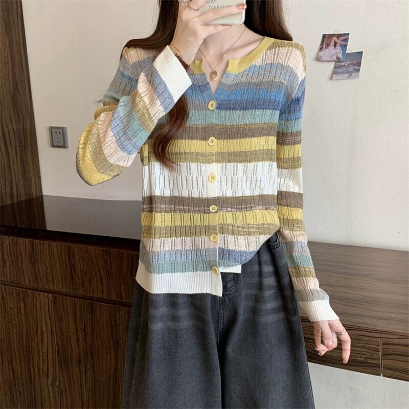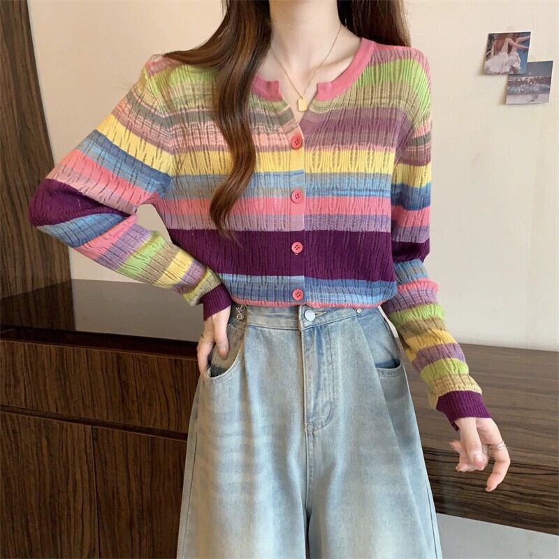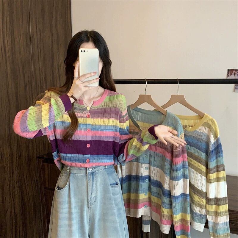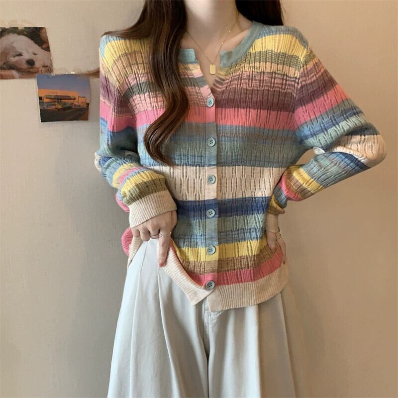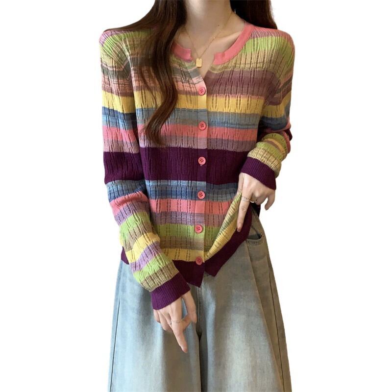 プラスサイズの女性の 2023 秋の新スタイルファット mm ファッションデザインスプライシングトップスカラフルなストライプ長袖セータートレンディな ロング 大きめサイズ オータム 秋物 8884114616256160