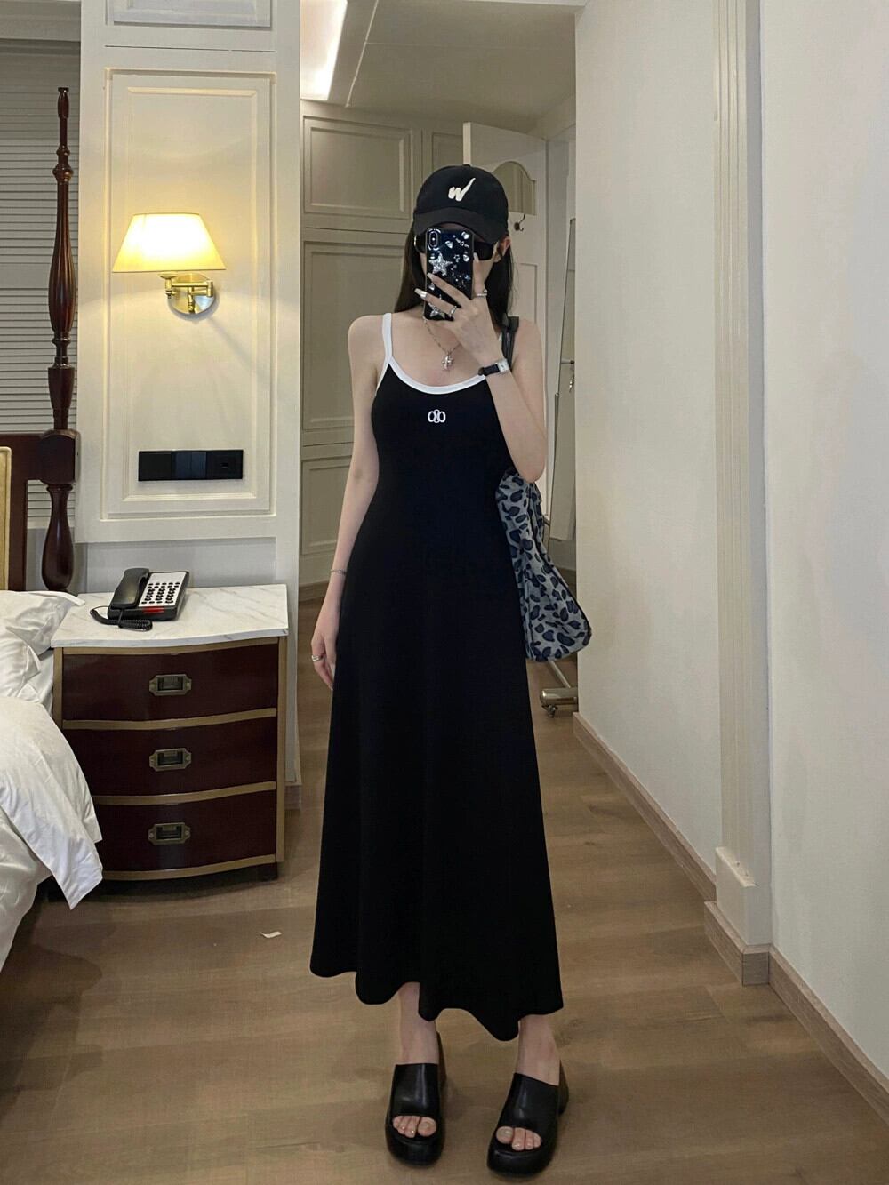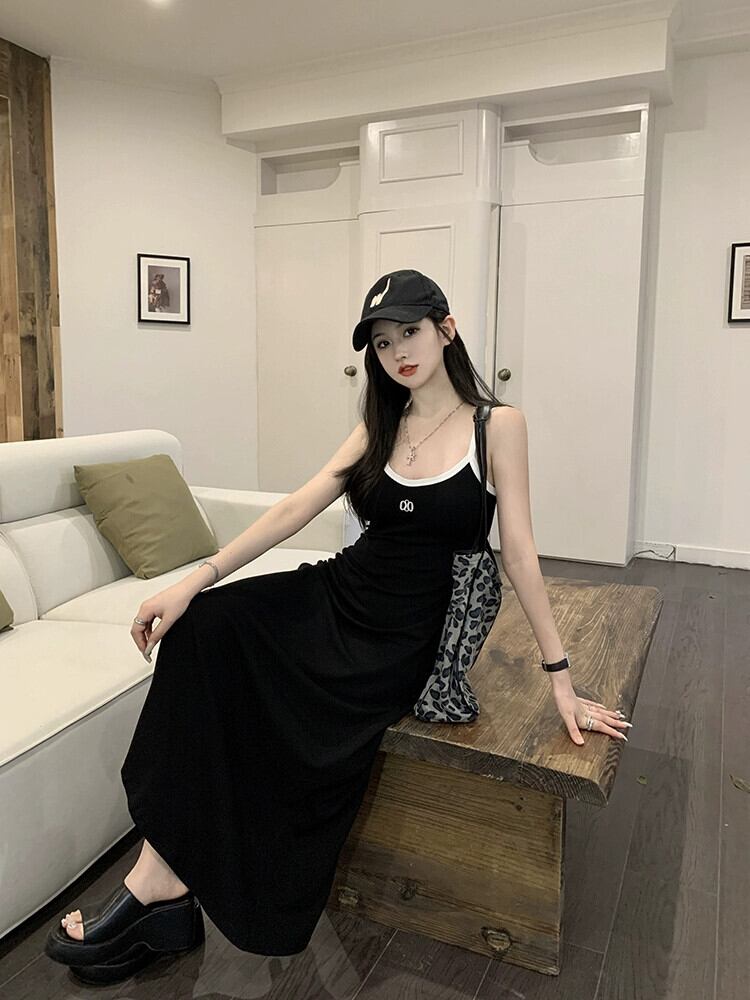 プラスサイズの女性の 2023 ファットシスター夏服 A ラインストライプスリムサスペンダードレスヒップカバー気質ロングスカート 大きめサイズ サマー 夏物 Aライン 8884133424680683