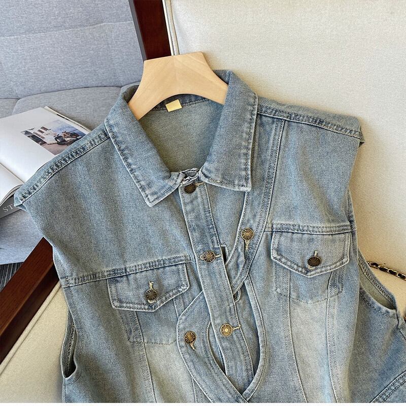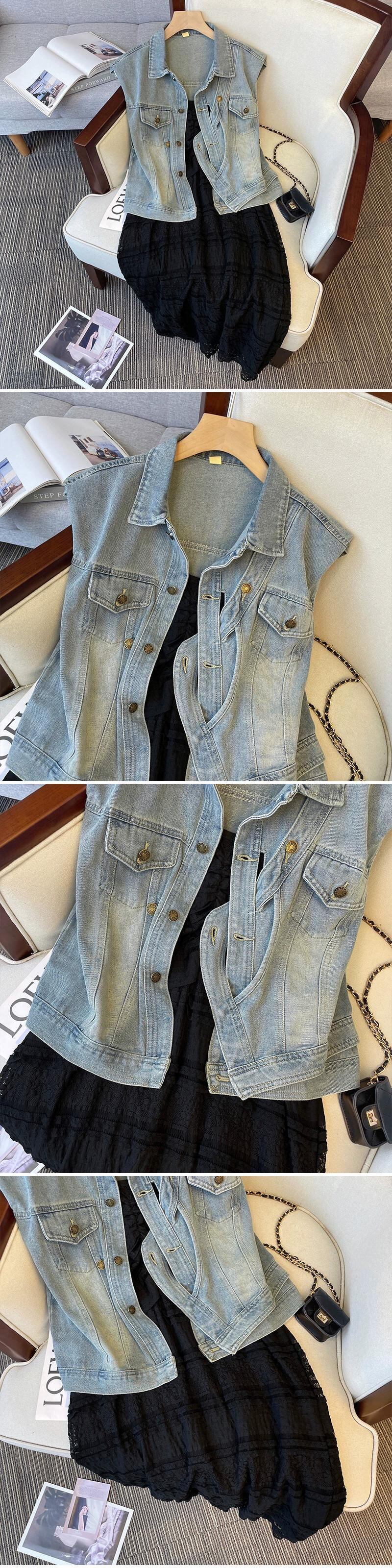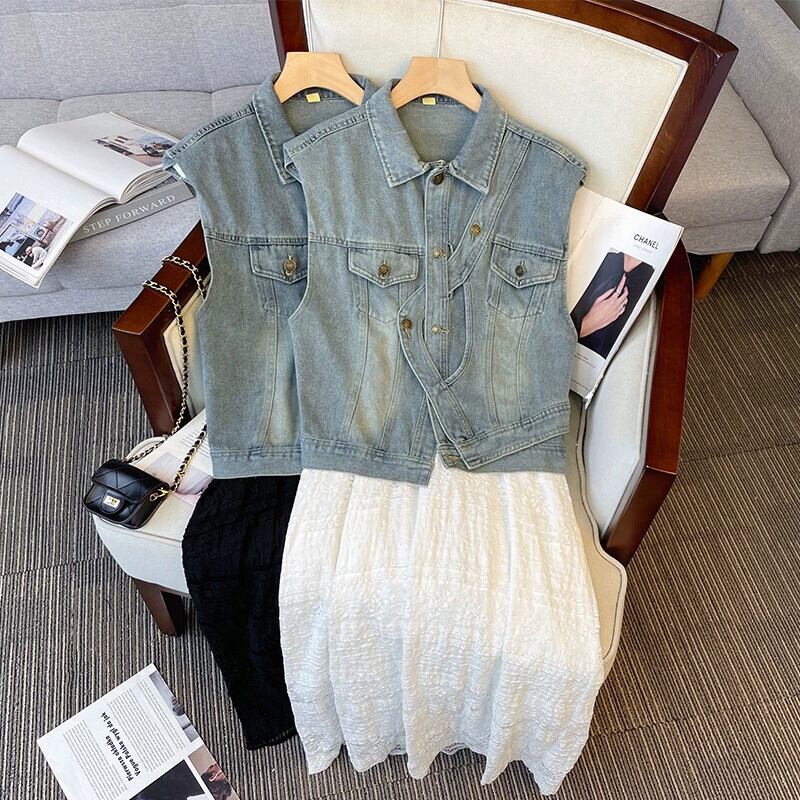デニム ベスト ドレス プラス サイズの女性の 2023 夏の新しいファッショナブルなツーピース スーツ脂肪をスリムに見せ、肉をカバーします。 大きめサイズ サマー 夏物 8884176154470502