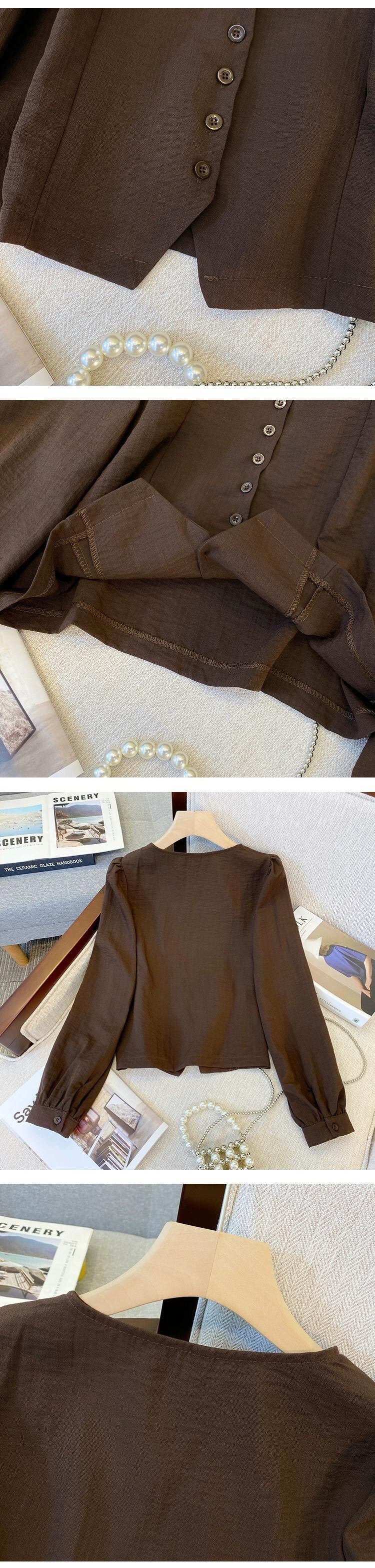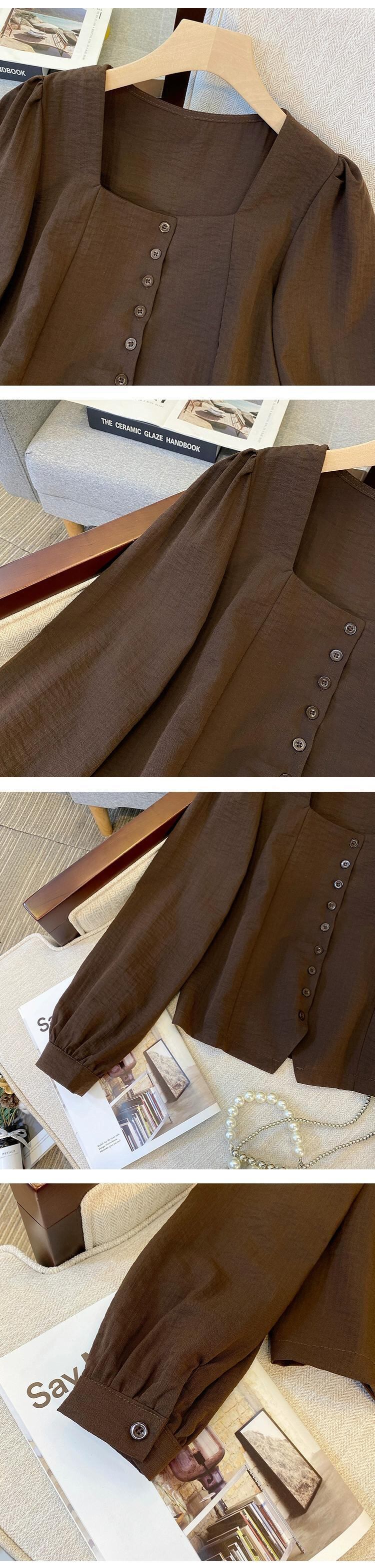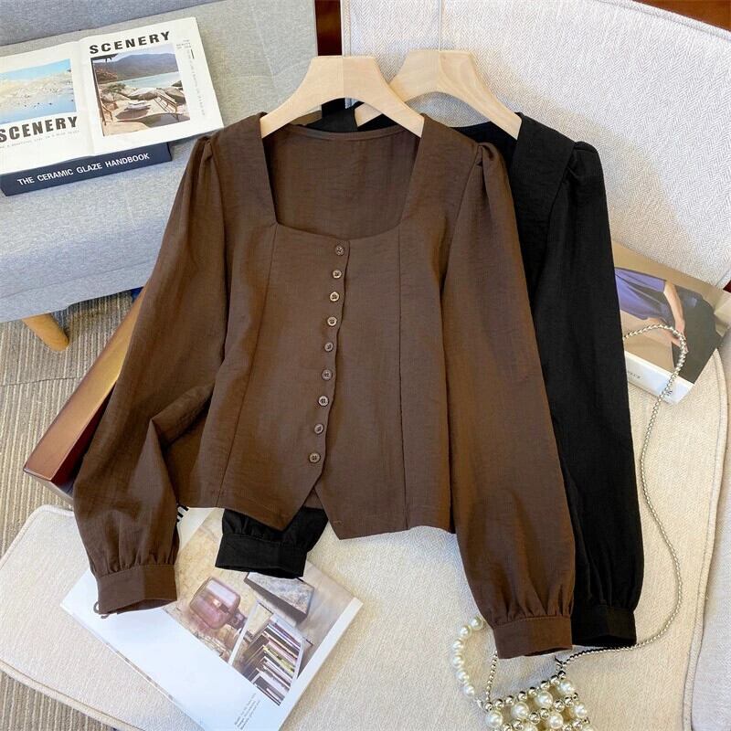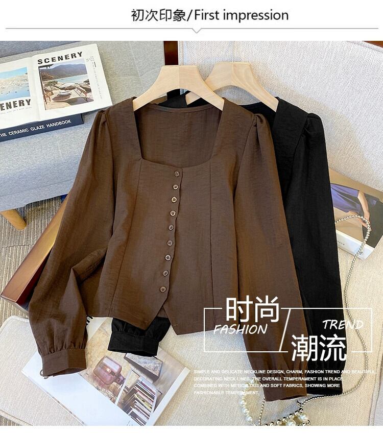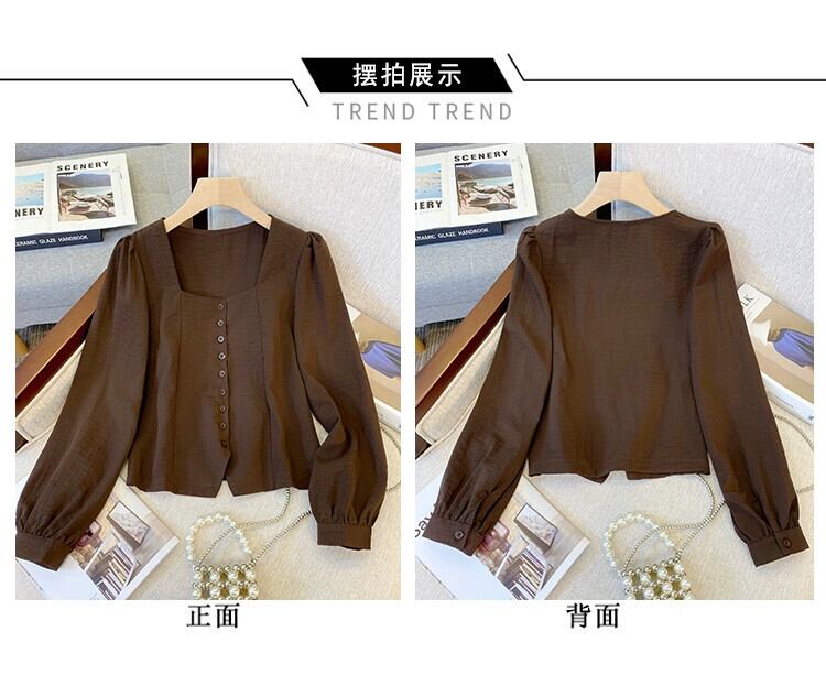 プラスサイズの婦人服 2023 トレンディな秋の新しいファットシスターデザインスリムシフォンシャツ不規則なスクエアカラー多用途トップ 大きめサイズ オータム 秋物 スクウェア 8884116257655707