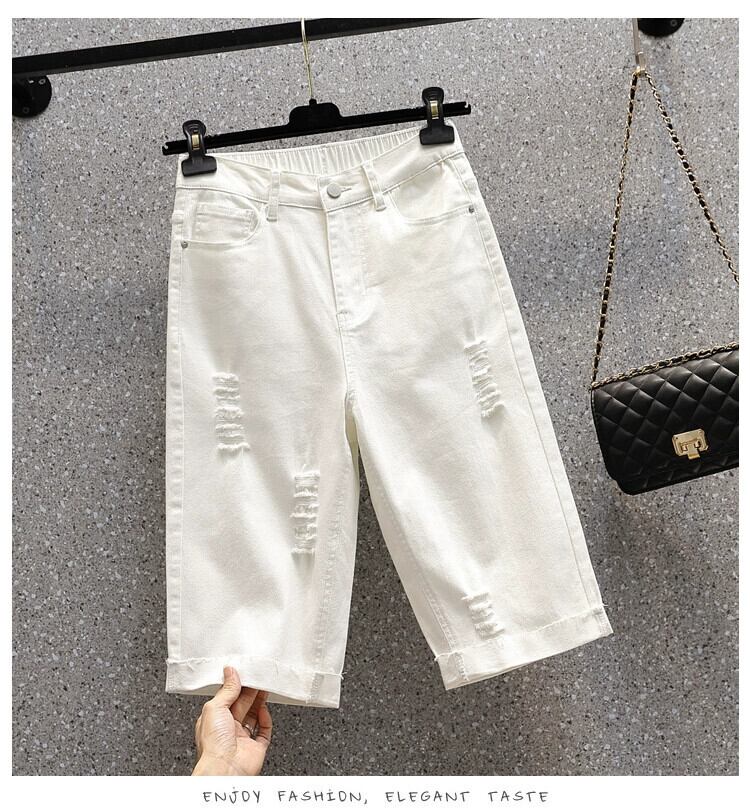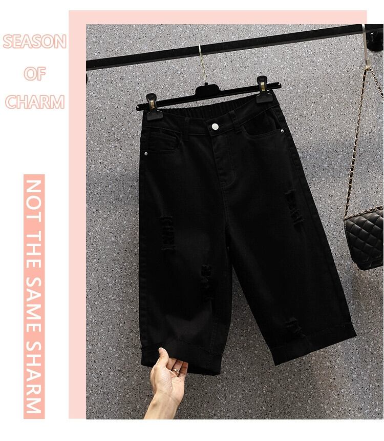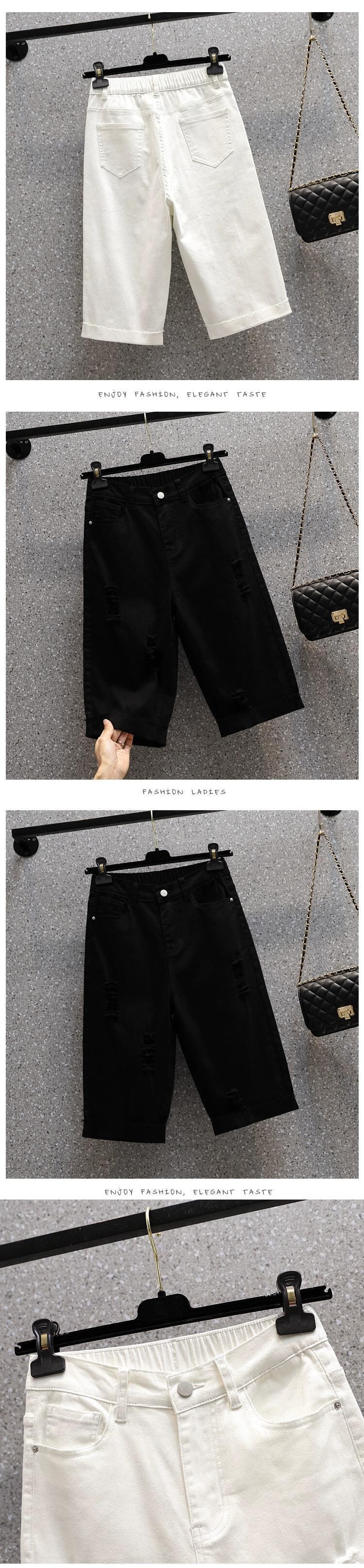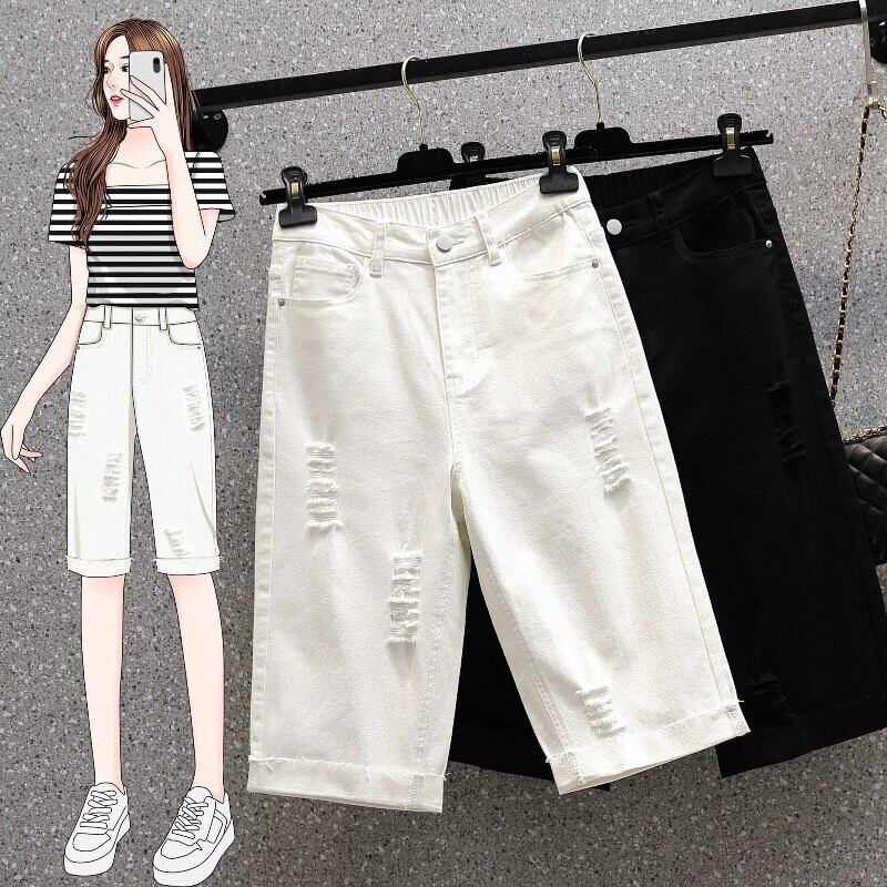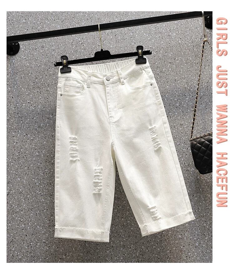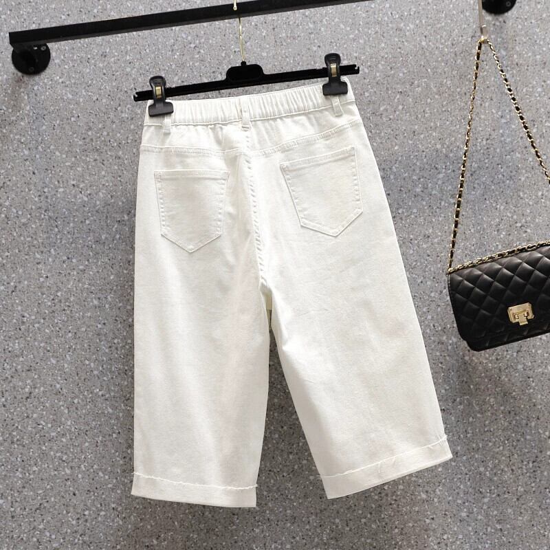 夏の新しいプラスサイズの女性の弾性リッピングストレートレッグジーンズファットハイウエスト弾性ウエストカジュアルパンツ ハイウェスト エラスティック 伸縮 大きめサイズ サマー 夏物 888417606521686