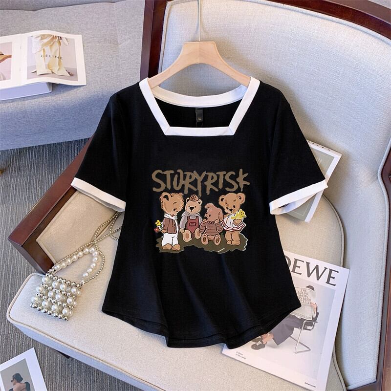 プラスサイズの婦人服脂肪 mm 2023 夏新スクエアカラー右肩半袖 Tシャツ女性のファッショナブルな痩身少し脂肪痩身トップ 大きめサイズ サマー 夏物 スクウェア 8884126743474293