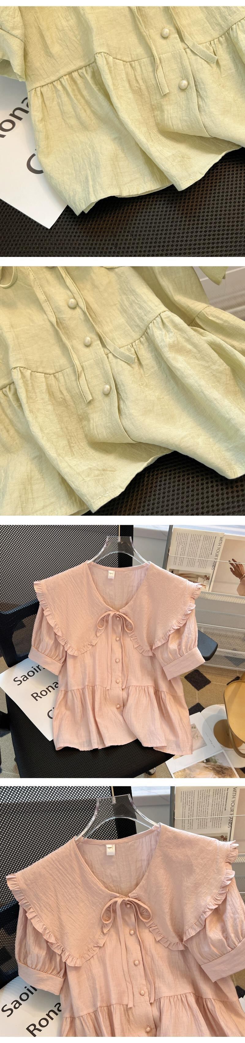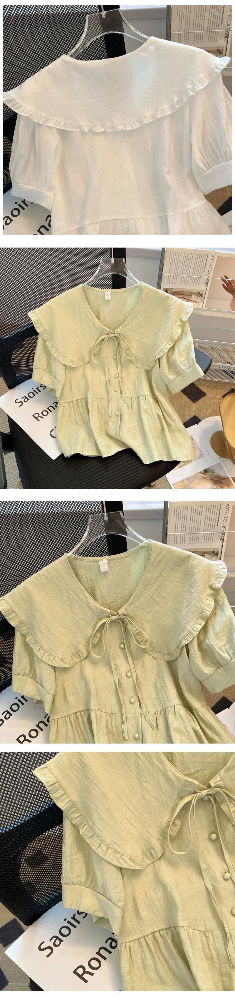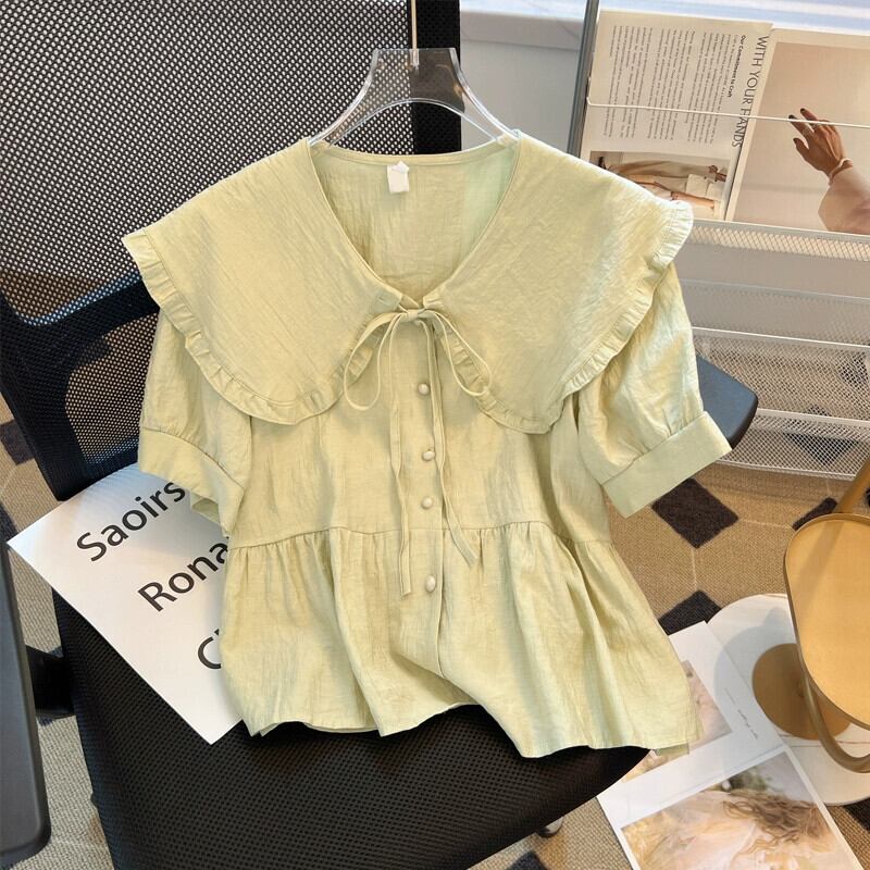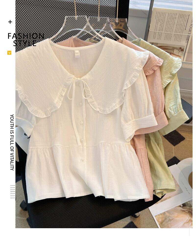 プラスサイズ年齢を減らす人形襟半袖シャツ女性の夏の新しい脂肪痩身ルーズフレンチシャツトップ 大きめサイズ サマー 夏物 888412430867903