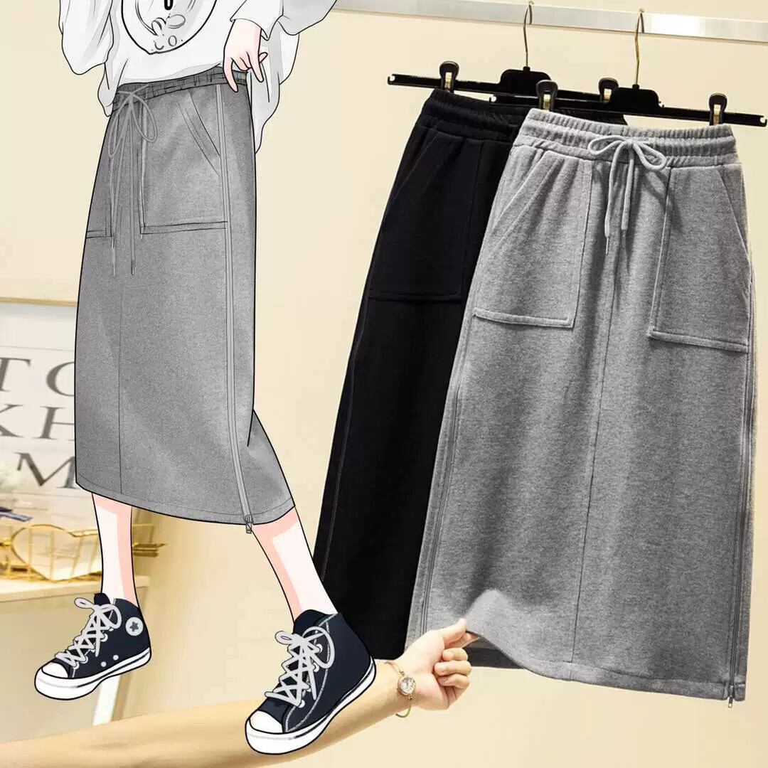 プラスサイズの婦人服 2023 ファットシスター秋服新しいカジュアルスポーツスタイルサイドジッパーハイウエストスカートワンステップスカート ハイウェスト 大きめサイズ オータム 秋物 8884164666983274