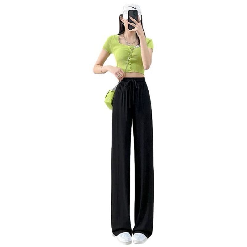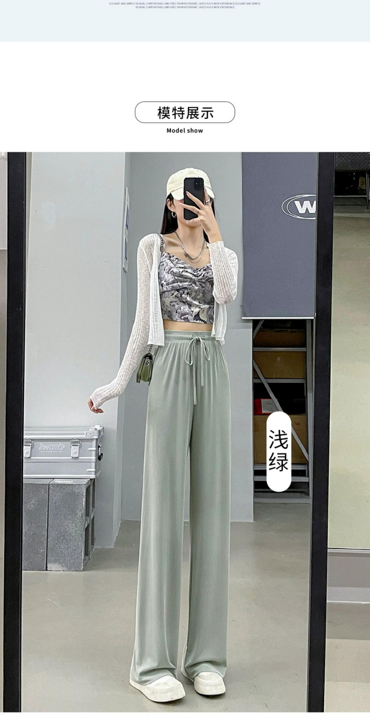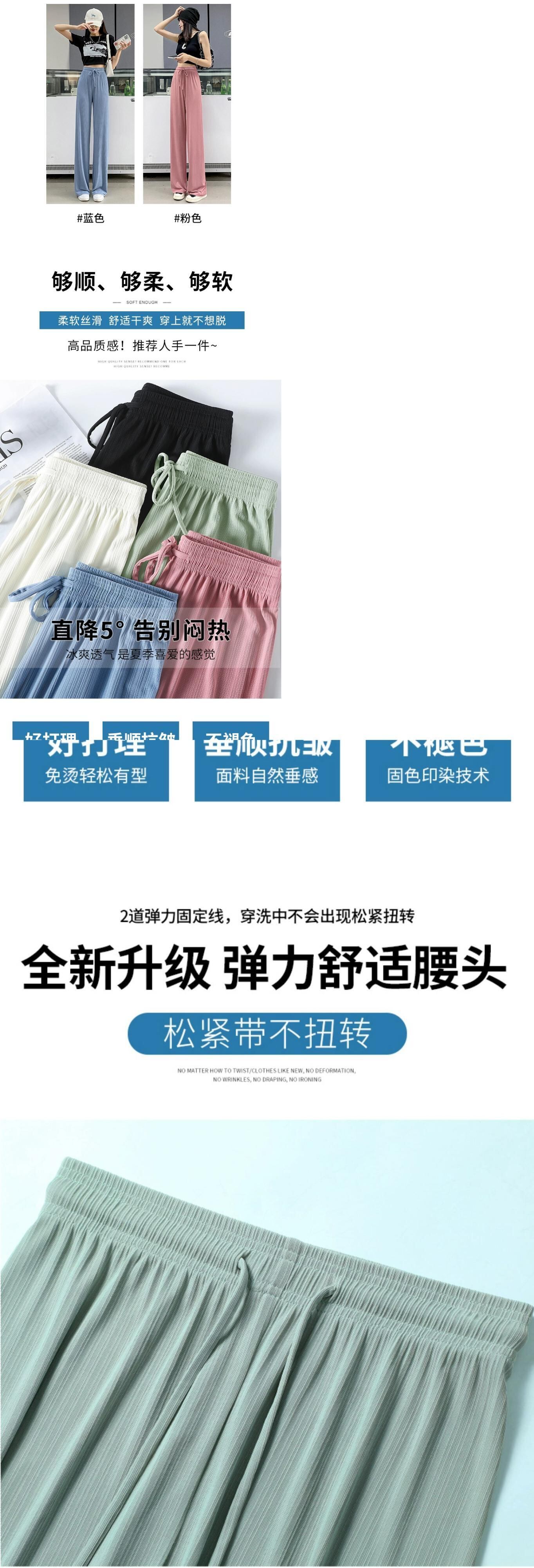 大きいサイズのアイスシルクワイドレッグパンツ女性の夏の新しい脂肪姉妹ストレートカジュアル小男ドレープスリムカジュアルクールパンツ 大きめサイズ サマー 夏物 8884124785037184