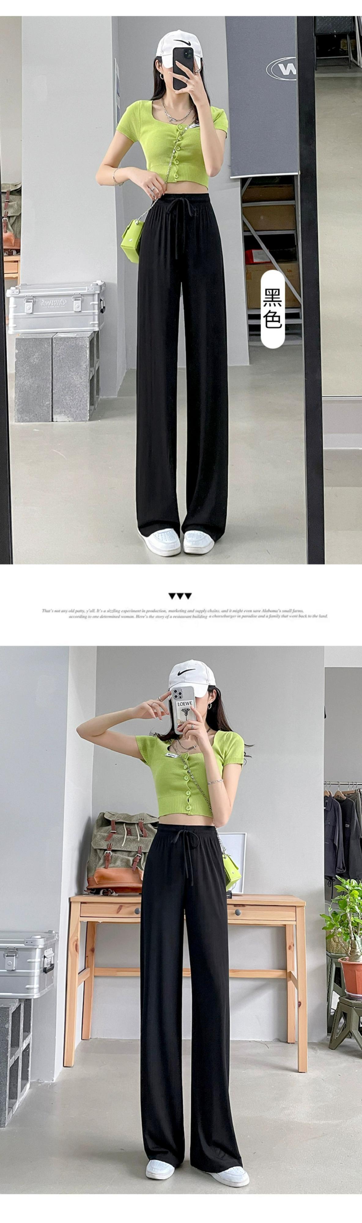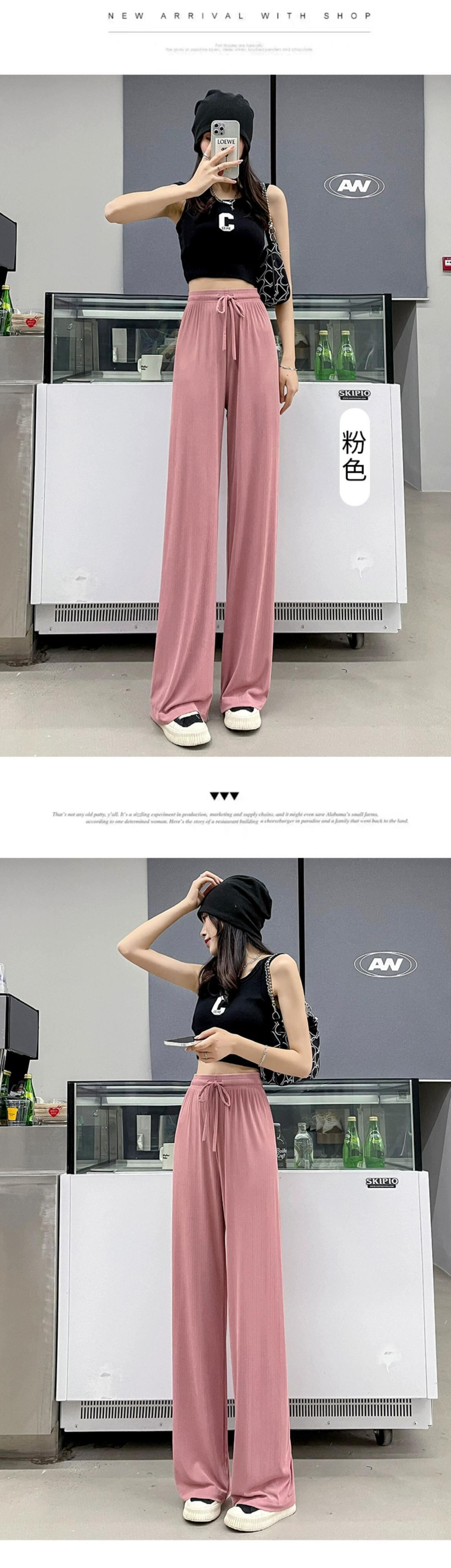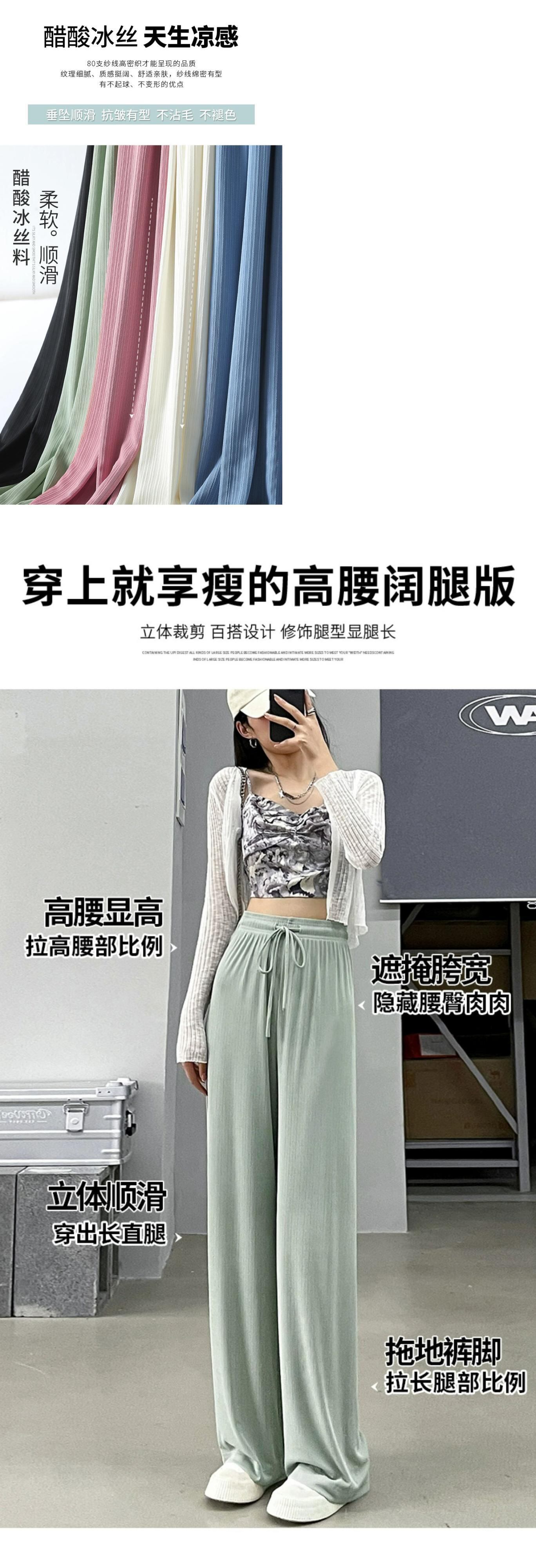 大きいサイズのアイスシルクワイドレッグパンツ女性の夏の新しい脂肪姉妹ストレートカジュアル小男ドレープスリムカジュアルクールパンツ 大きめサイズ サマー 夏物 8884124785037184