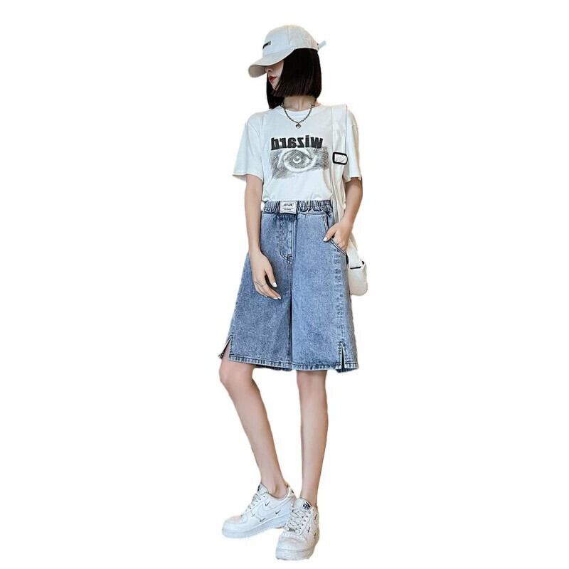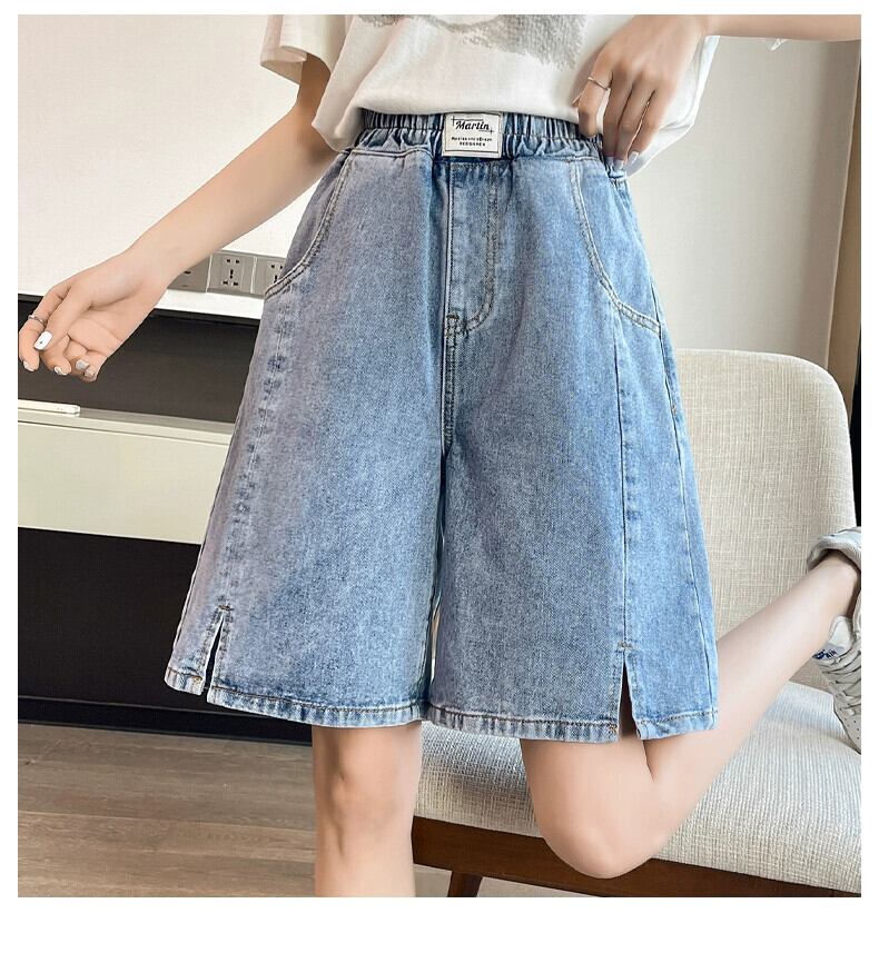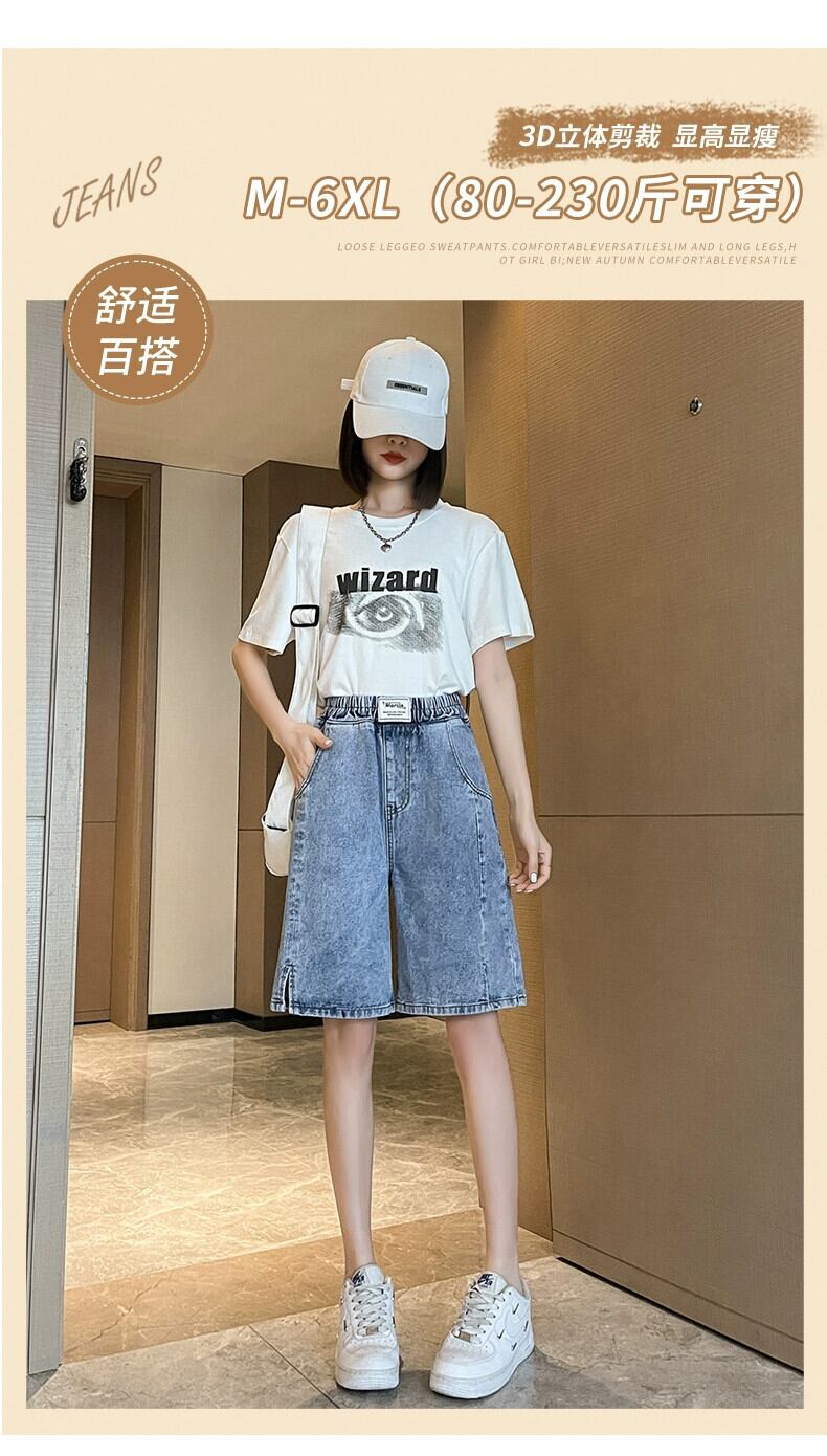 プラスサイズの女性の脂肪 2023 夏ワイドレッグデニムショートパンツルーズハイウエスト小柄な人スリム A ライン 5 点パンツ ハイウェスト 大きめサイズ サマー 夏物 ショーツ ブルマー Aライン ワイドパンツ 8884126356566080