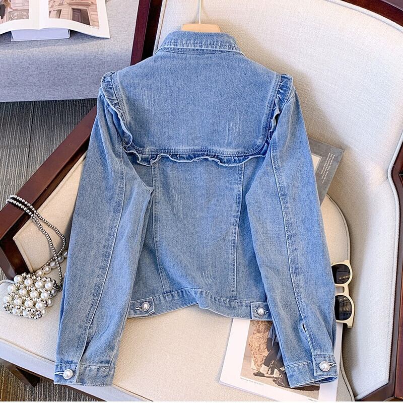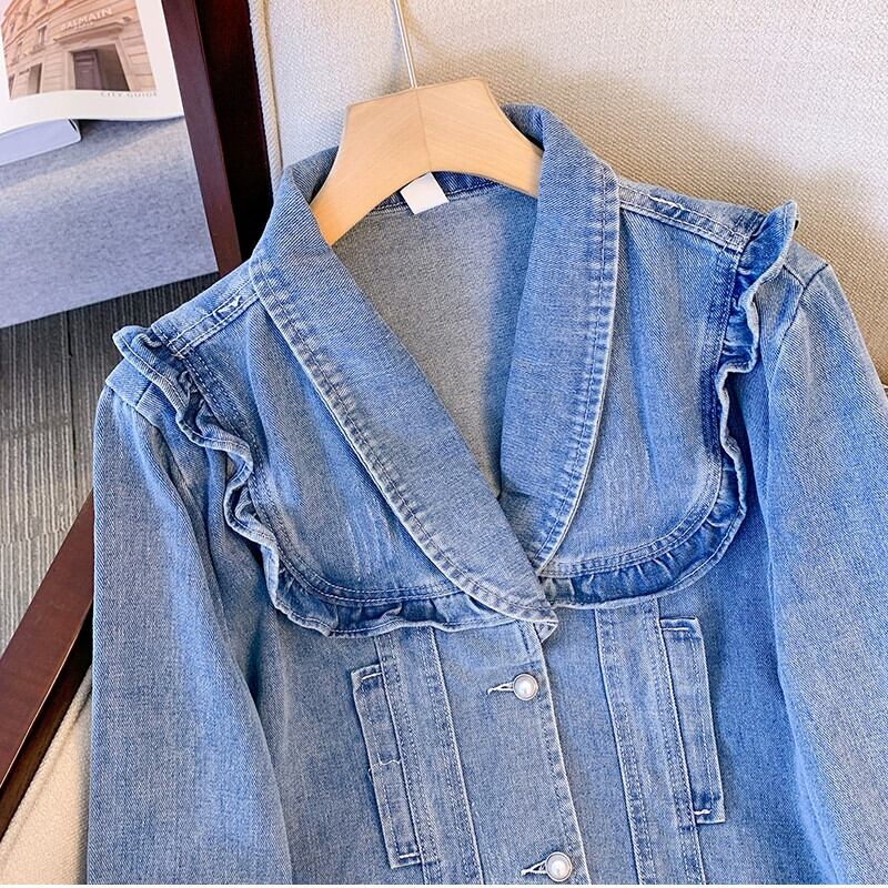 プラスサイズの婦人服 2023 秋服脂肪、気質デザイン、年齢を軽減するデニム ジャケット、スリムで多用途のファッショナブルなトップス 大きめサイズ オータム 秋物 8884119035082855