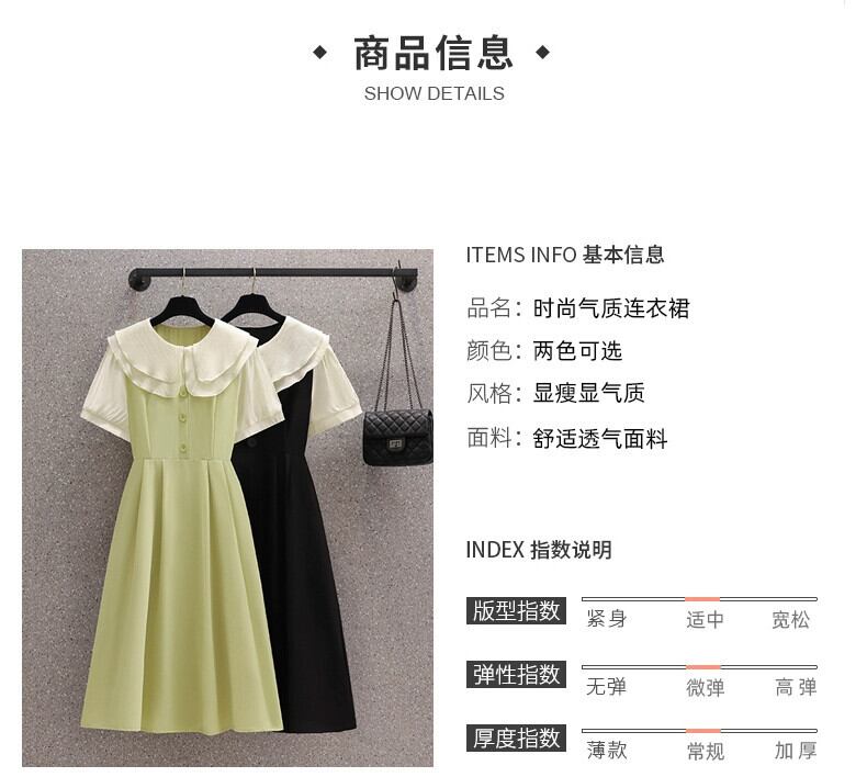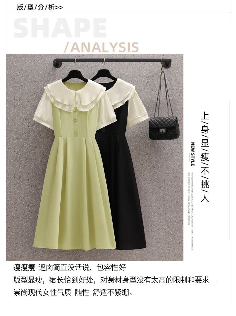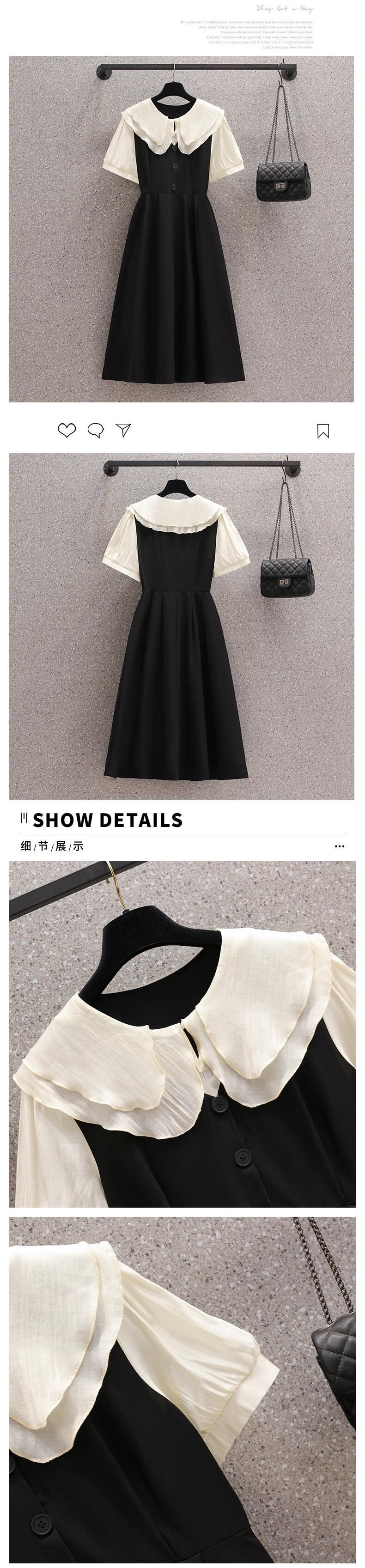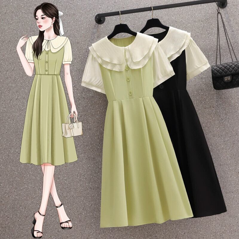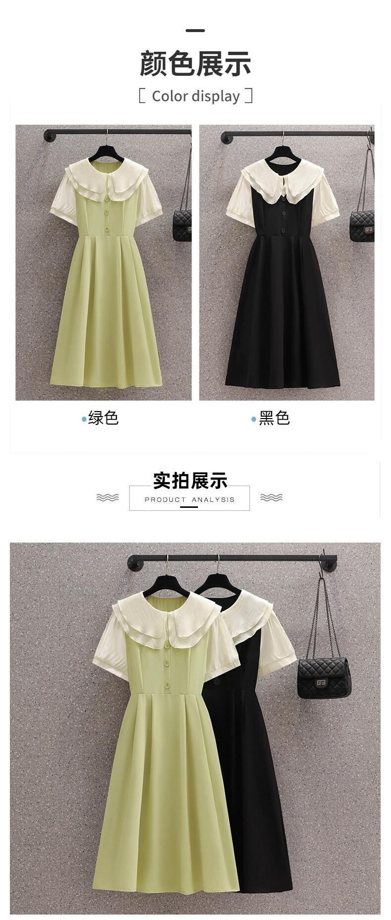 プラスサイズの女性の 2023 夏服脂肪、フランスの気質、エレガントなスタイルの A ライン スカート、対照的な色、二重襟、スリム ドレス 大きめサイズ サマー 夏物 Aライン 8884169178352206