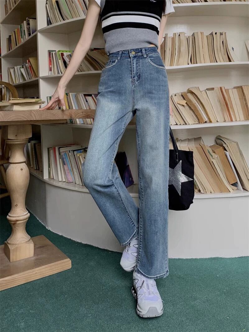 プラスサイズの婦人服 2023 脂肪姉妹秋服新レトロストレートジーンズ緩い痩身シガレットパンツ小人 大きめサイズ オータム 秋物 8884117980973452