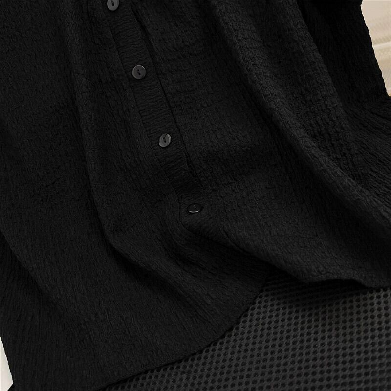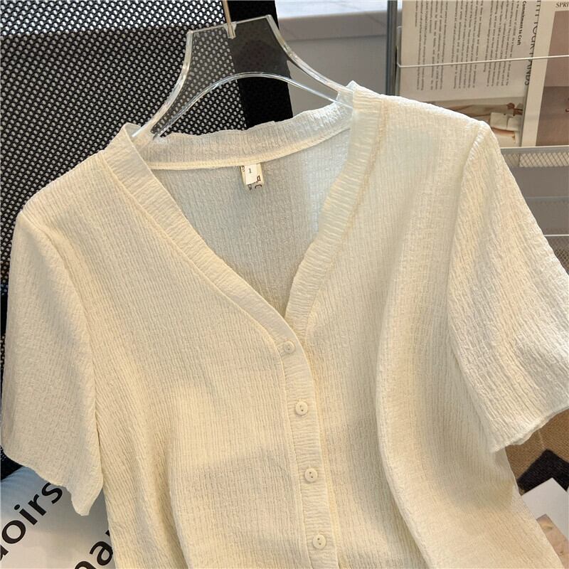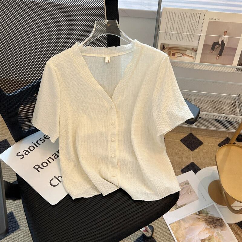 大きいサイズの夏薄いフレンチ V ネック アイス シルク半袖シャツ脂肪をカバーするお腹と高級ショート カーディガン トップ 大きめサイズ サマー 夏物 Vネック 8884122030124944