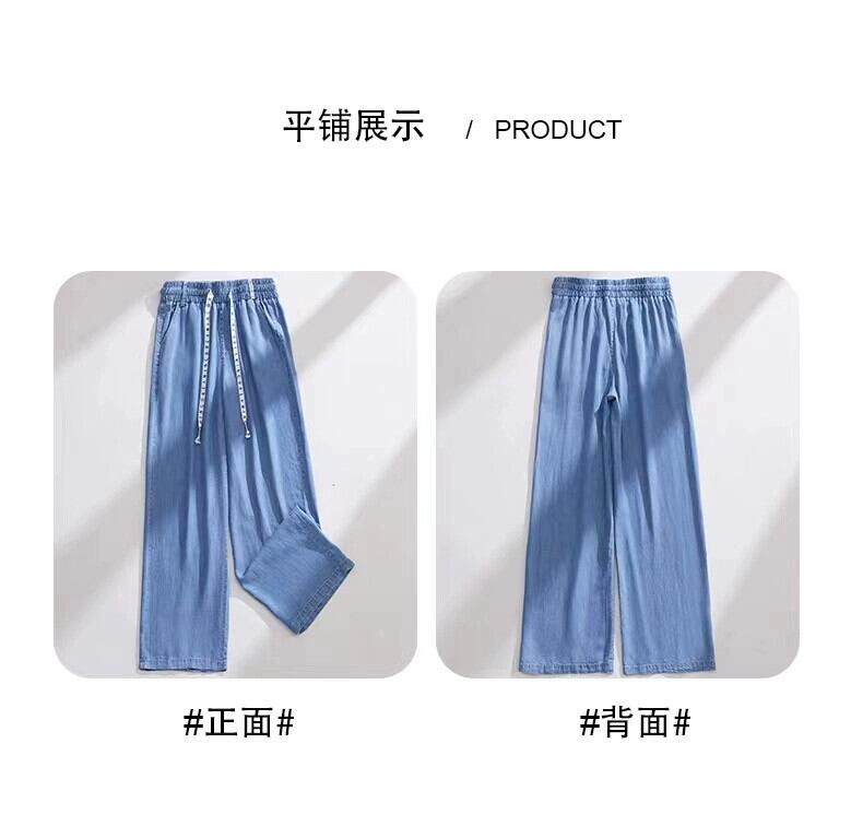 大きいサイズ 2023 夏ハイウエスト痩身アイスシルクストレートジーンズファットカジュアルルーズワイドレッグパンツ ハイウェスト 大きめサイズ サマー 夏物 ワイドパンツ 8884157746570961