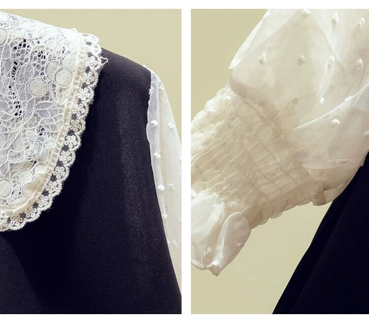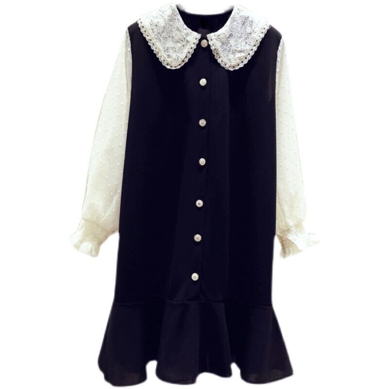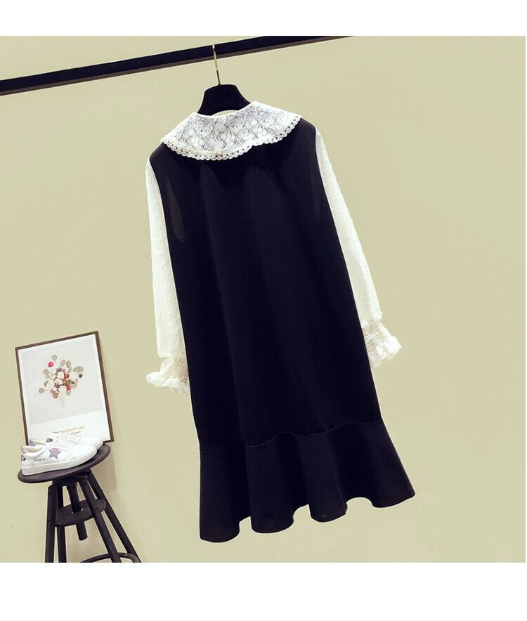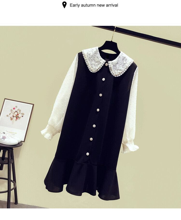 プラスサイズの女性の 2023 ファットシスター秋スタイルスタイル年齢軽減ミッドレングススカート痩身レーススプライシングドレス 大きめサイズ オータム 秋物 8884135313979980