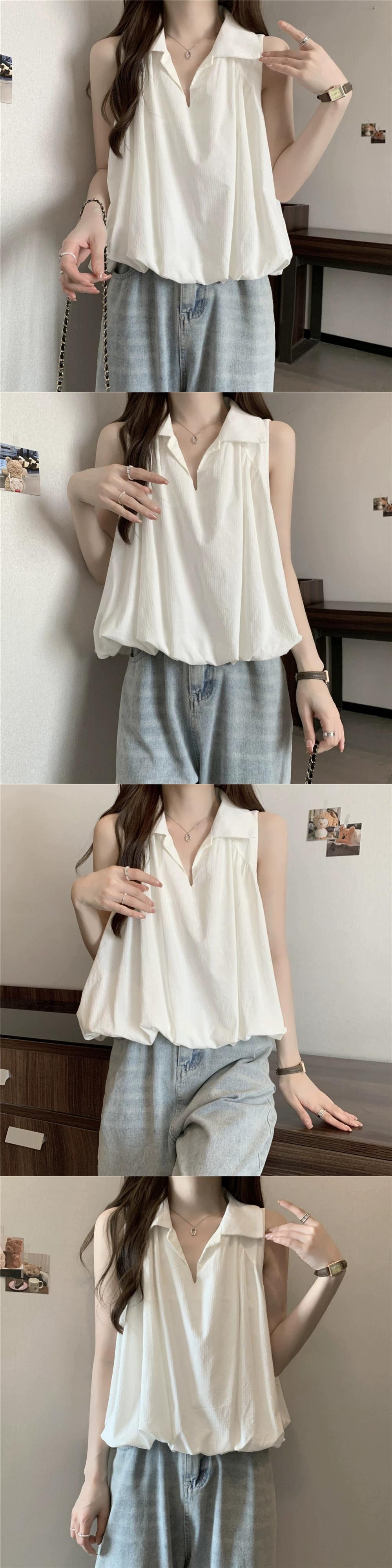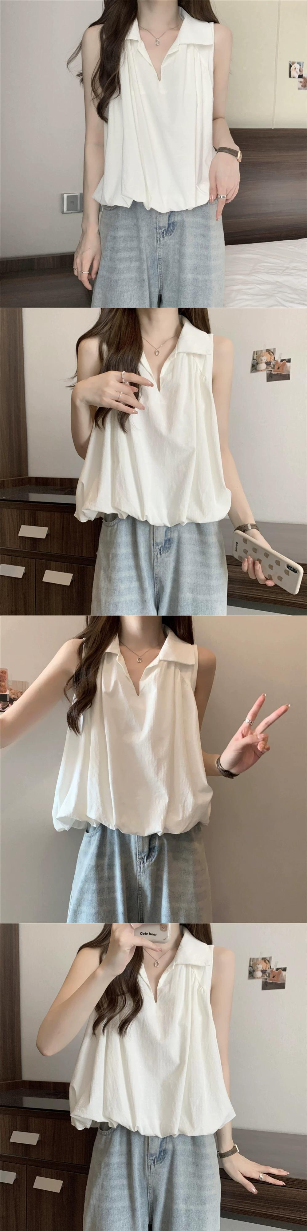 ED オフショルダー ポロカラー ノースリーブ ベスト 2023 夏プラス サイズ脂肪ルーズ痩身プリーツ ショート トップ 大きめサイズ サマー 夏物 8884184370045068