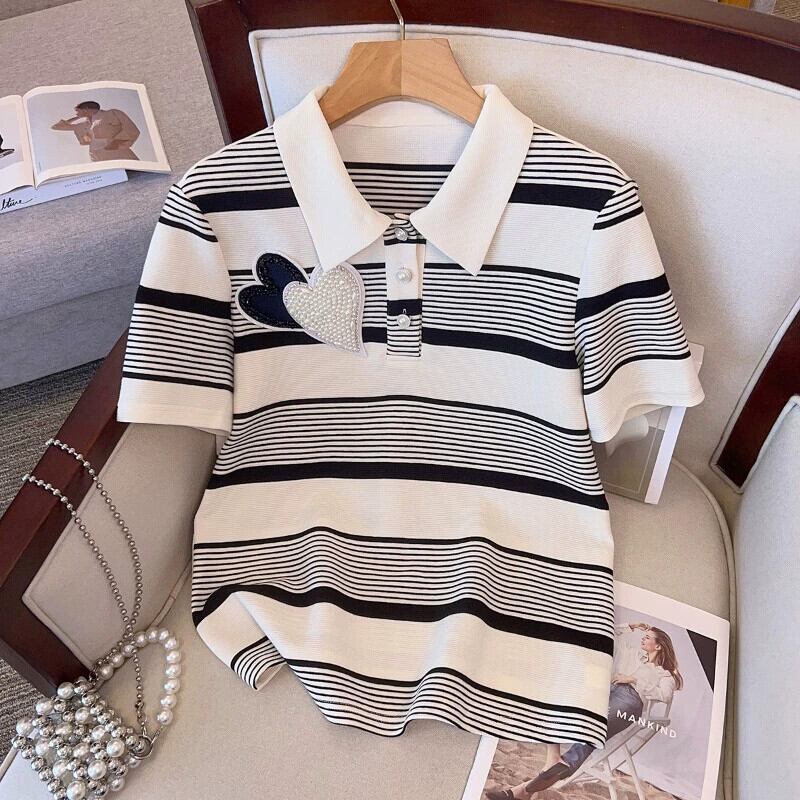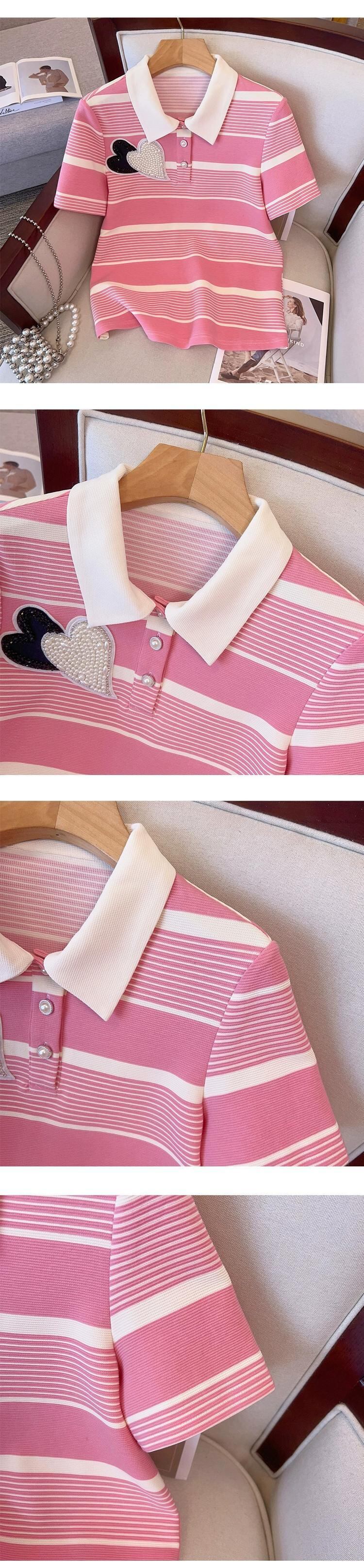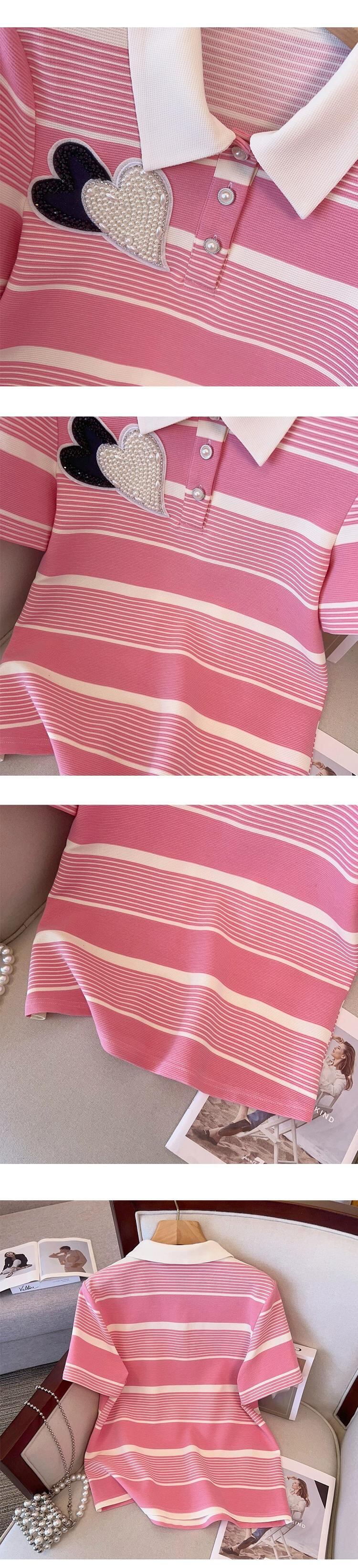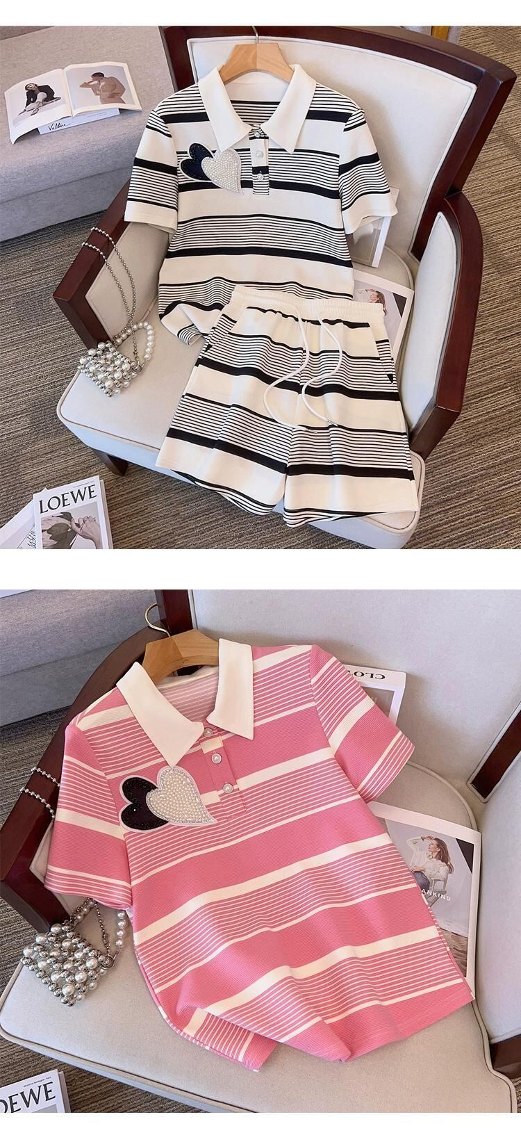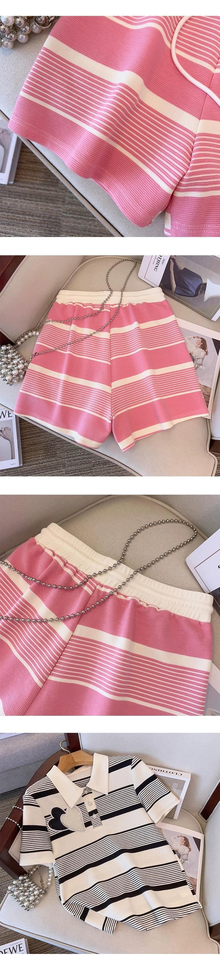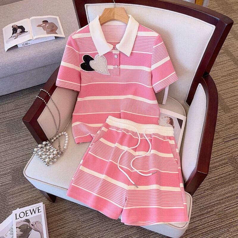 プラスサイズの婦人服 2023 流行の夏の新しいファットシスターカジュアルファッションビーズストライプスーツトップショーツ 2 点セット 大きめサイズ サマー 夏物 ブルマー 8884193863471511