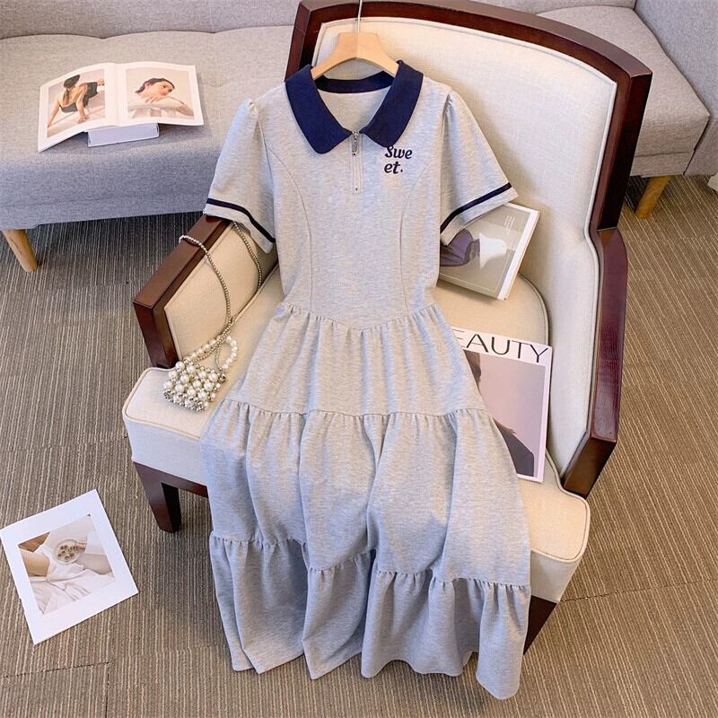 プラスサイズの女性の2023夏服太ってスリムで気質な股間をカバーするフレンチAラインスカートと配色ポロカラードレス 大きめサイズ サマー 夏物 8884140245156309
