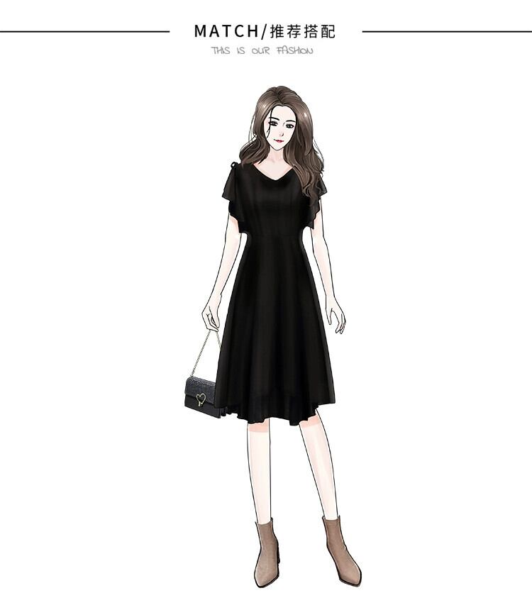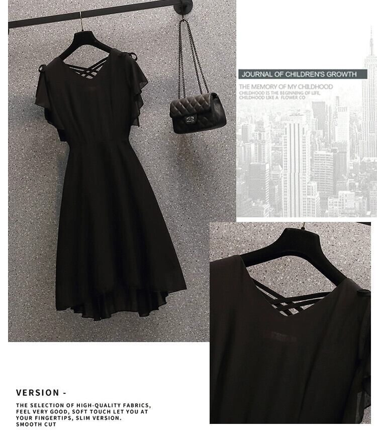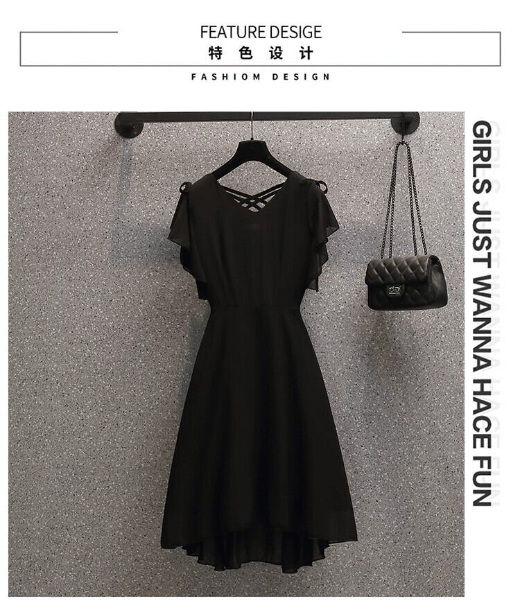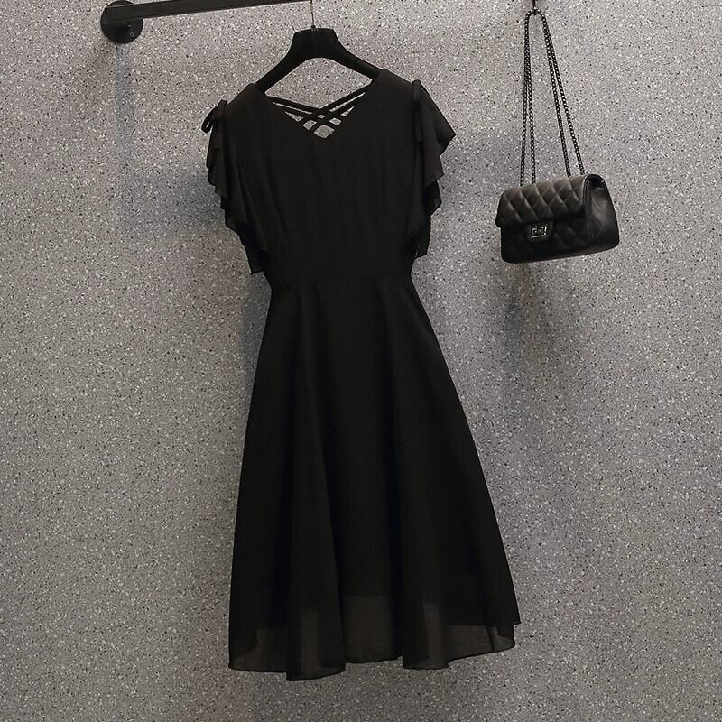 -end ヘップバーン スタイル ドレス 2023 新しい夏スタイル プラス サイズの脂肪はお腹をカバーし、スリムに見えるミッドレングスの黒のスカート ブラック 大きめサイズ サマー 夏物 8884143297625366
