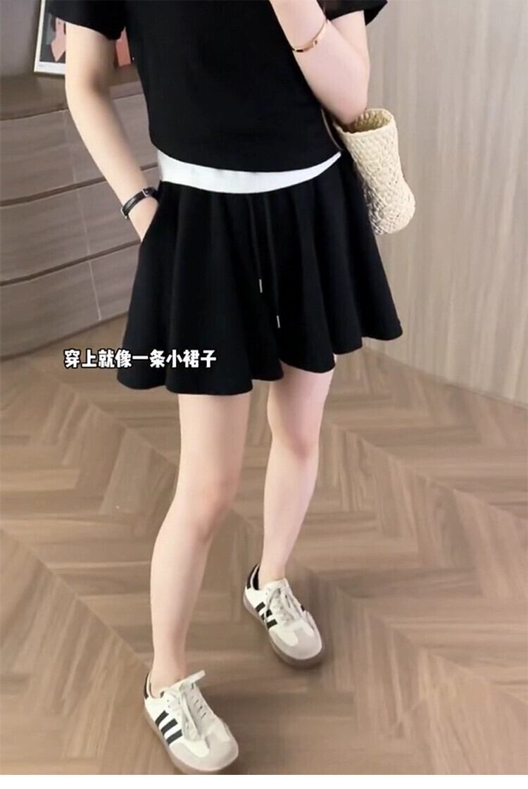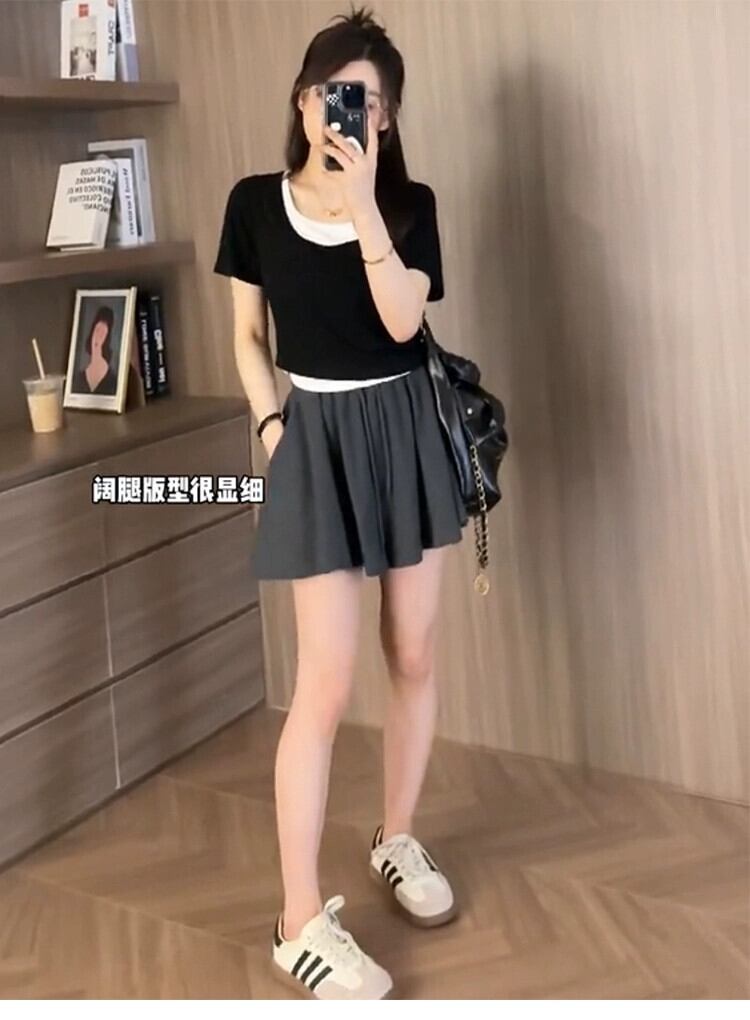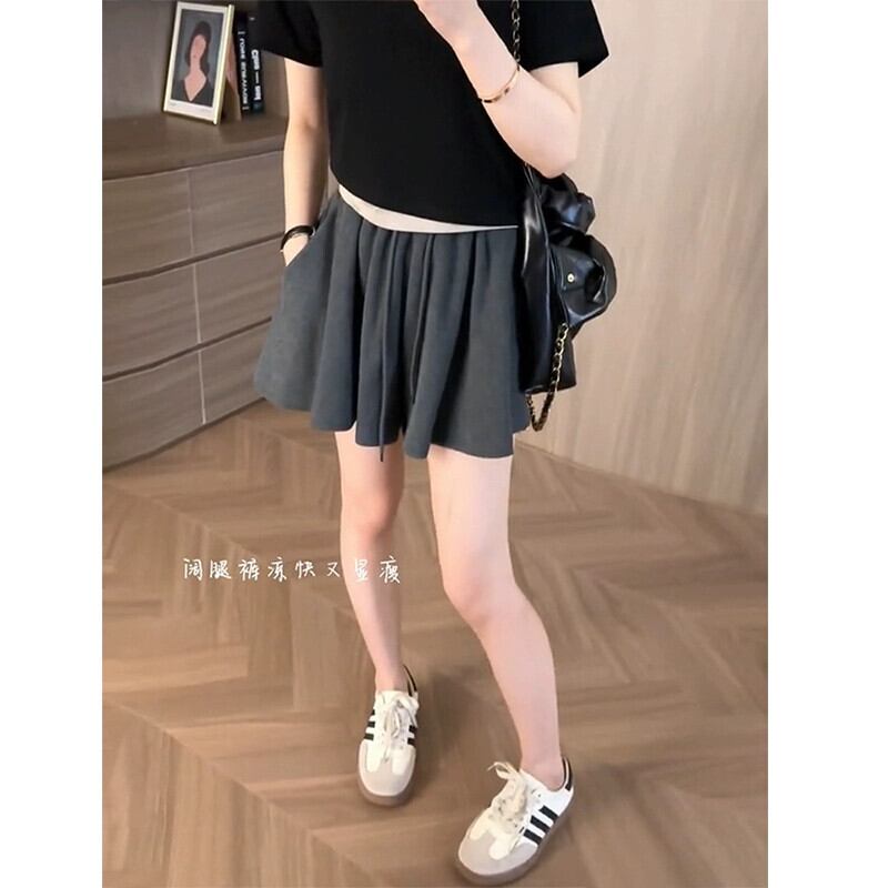 プラスサイズの女性の夏服、太った、ハイエンドのニッチ、ハイウエスト、洋ナシ型の体型、カジュアルなワイドレッグプリーツショーツ、小柄な人 ハイウェスト 大きめサイズ サマー 夏物 ブルマー 8884158787091140