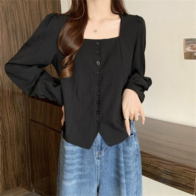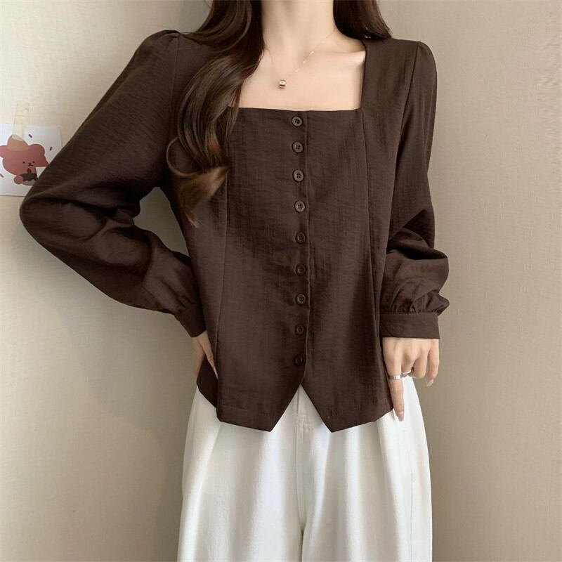 プラスサイズの女性の 2023 秋服脂肪少女編右肩痩身不規則な Tシャツスクエアネック腹カバートップ 大きめサイズ オータム 秋物 スクウェア 888417912717361