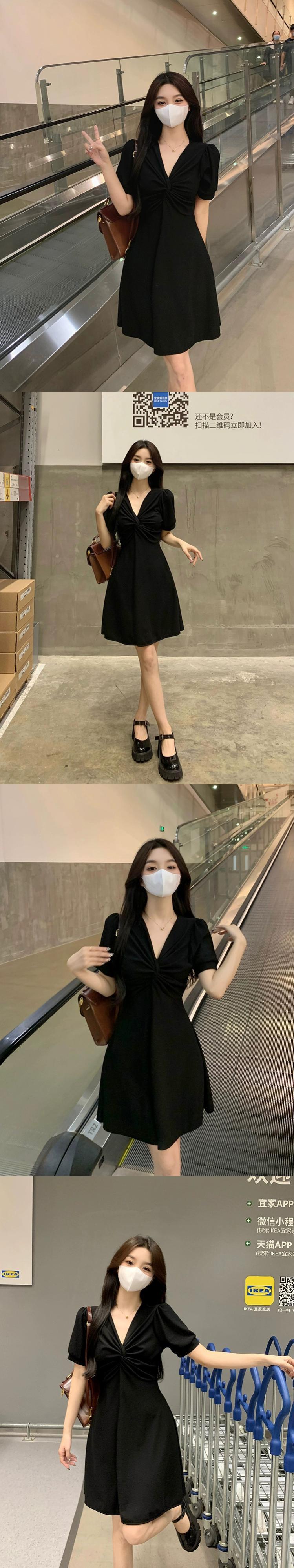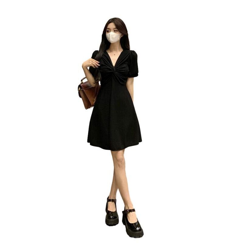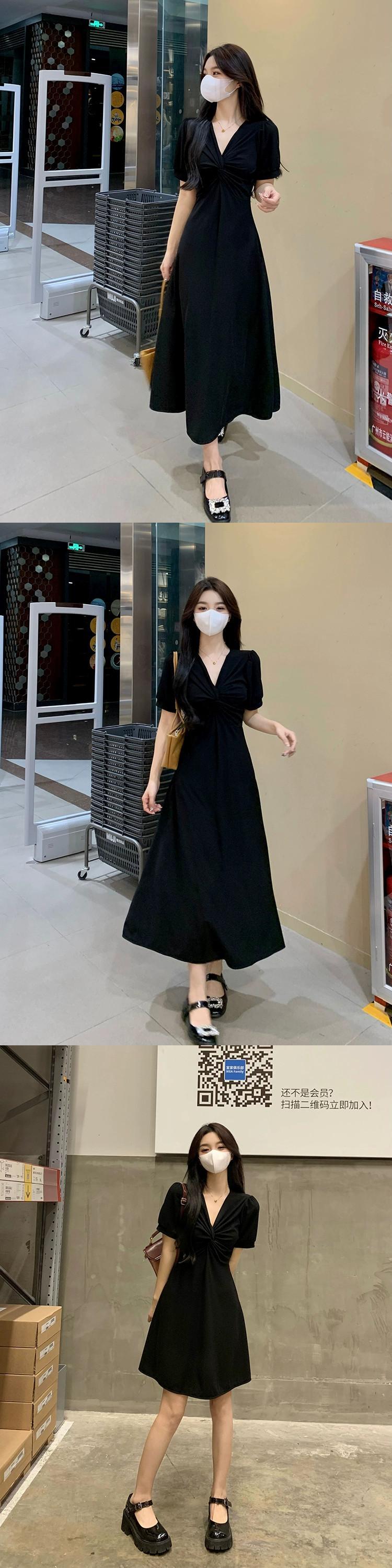 プラスサイズの婦人服 2023 夏服脂肪新しいロングとショートドレス痩身 v ネック底スカートフレンチロングスカート 大きめサイズ サマー 夏物 Vネック 88841428377358