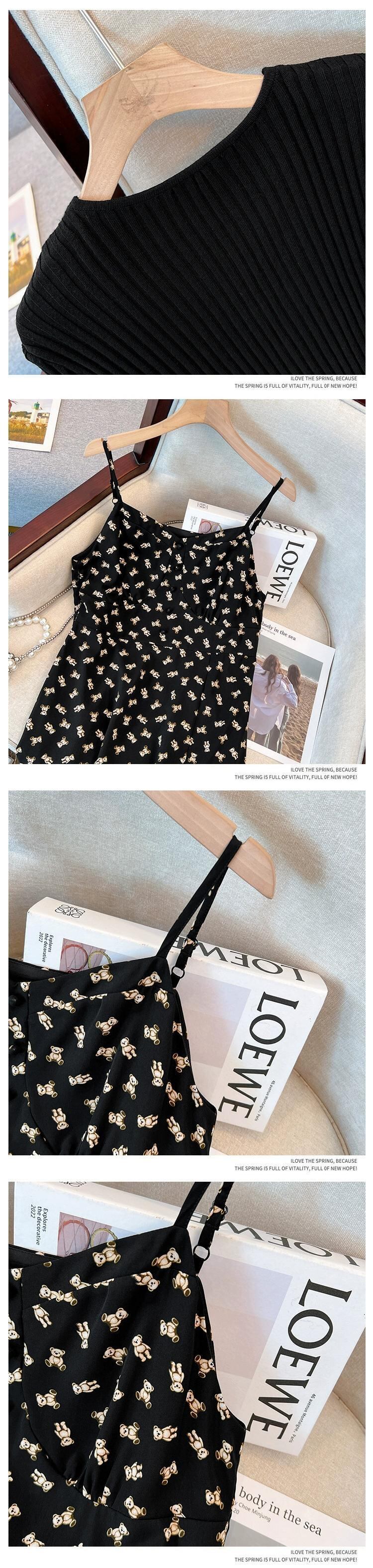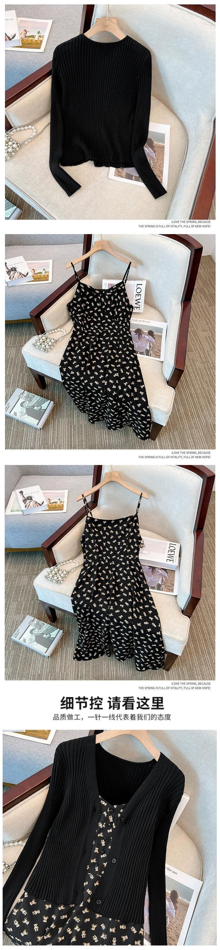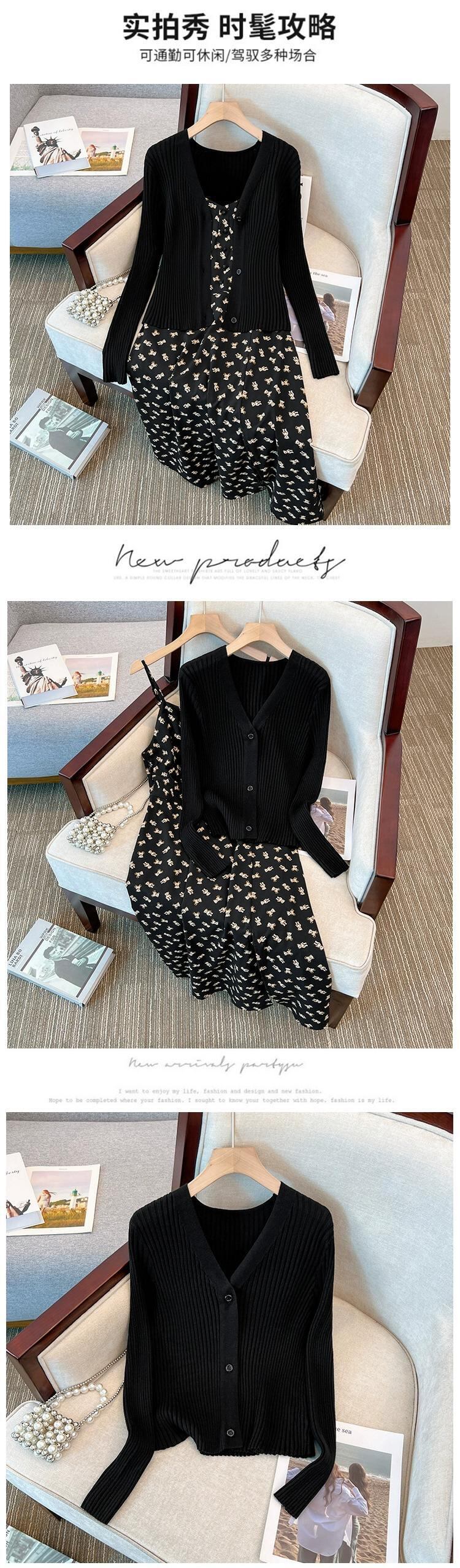 プラスサイズの女性の 2023 夏の新しいスタイルのファットシスターニットカーディガン花柄サスペンダースカート痩身と肉をカバーするツーピーススーツ 大きめサイズ サマー 夏物 8884117608561367