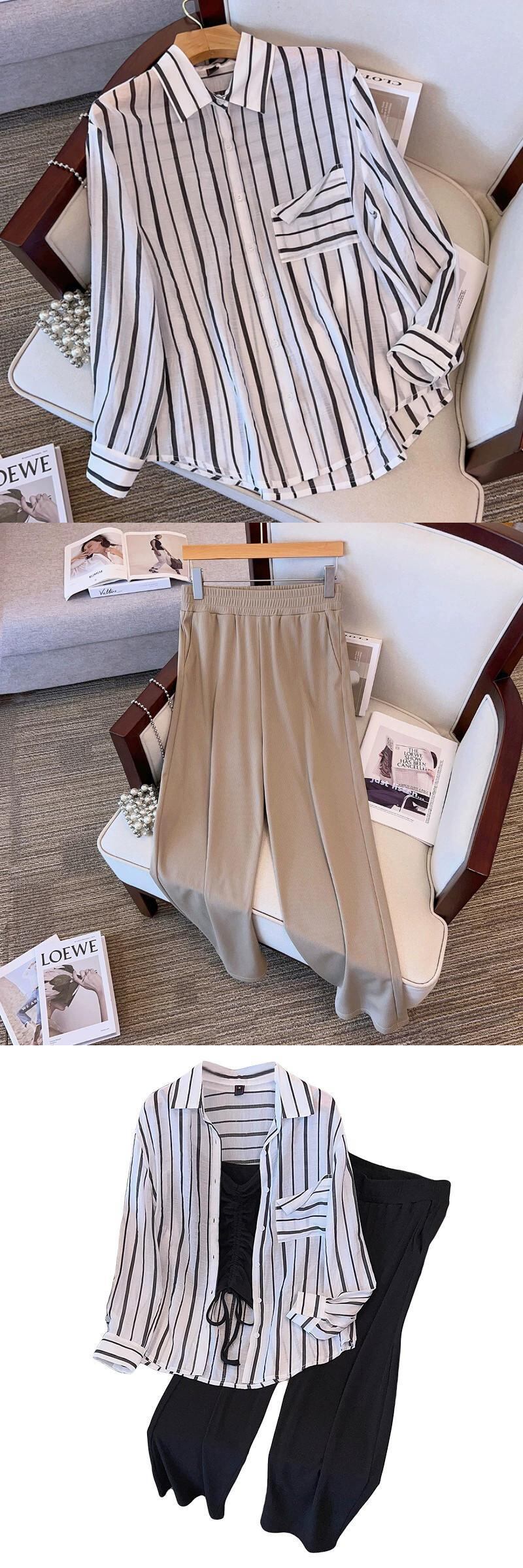 プラスサイズの婦人服 2023 流行の夏の新しい脂肪姉妹ルーズスーツ日焼け止めシャツベストカジュアルパンツスリーピーススーツ 大きめサイズ サマー 夏物 8884153435380921