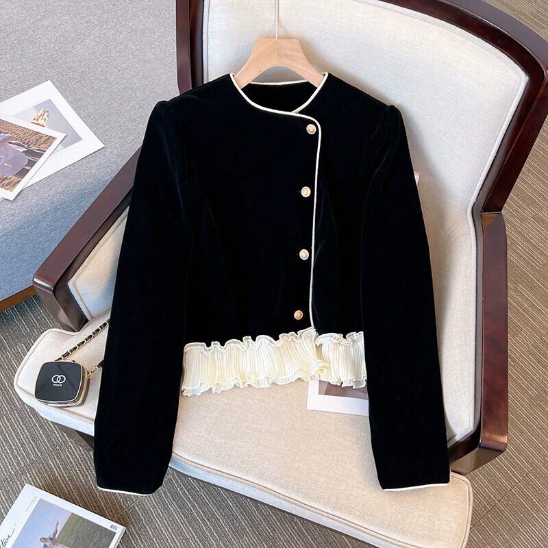 プラスサイズの女性の 2023 秋服太った女の子がスリムに見え、気質のスプライシングジャケットニッチな肌カバーと多用途トップス 大きめサイズ オータム 秋物 8884122553678242