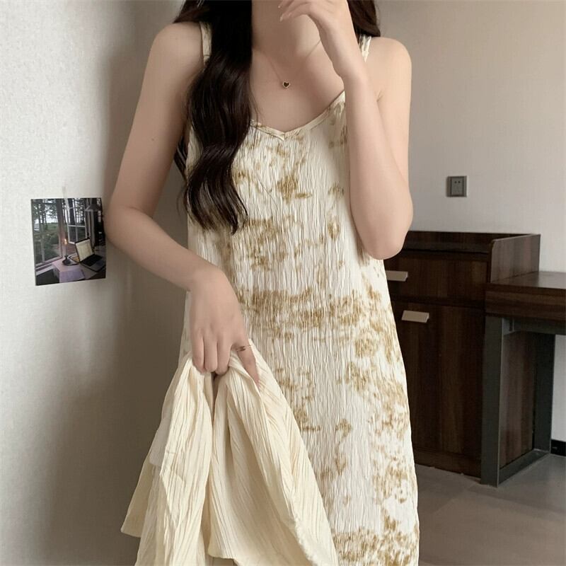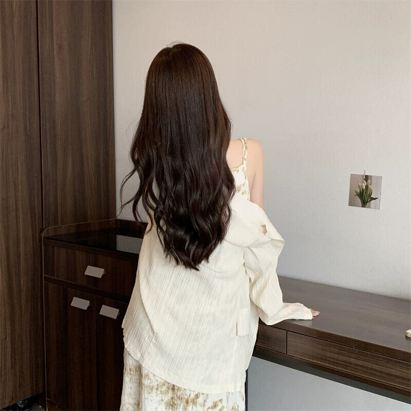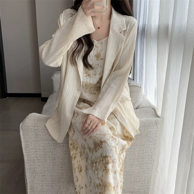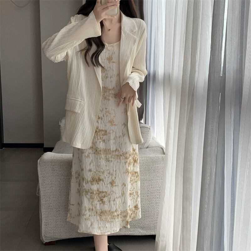 プラスサイズの婦人服 2023 ファットシスター秋の新長袖コートサスペンダースカートインクプリントプリーツロングスカート 2 点セット 大きめサイズ オータム 秋物 888414116700203