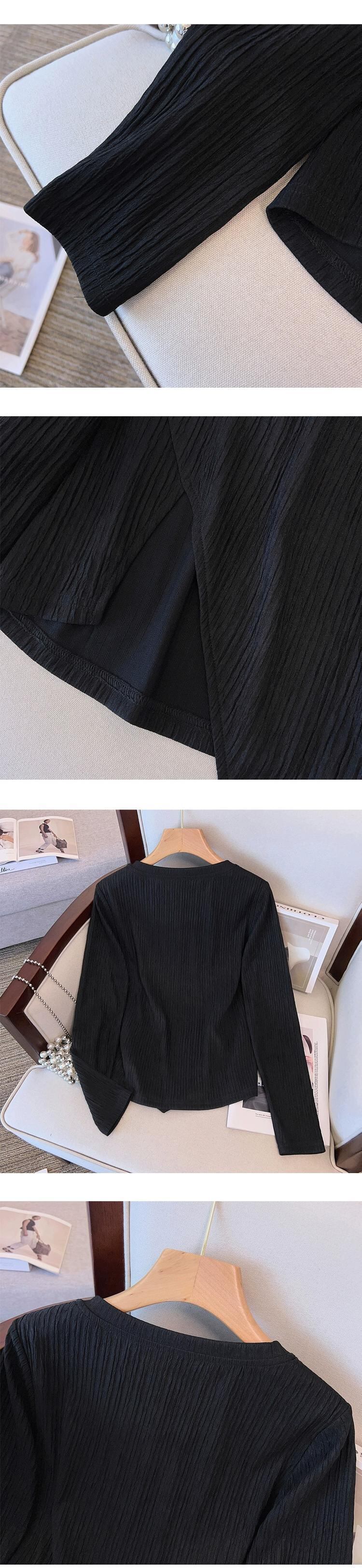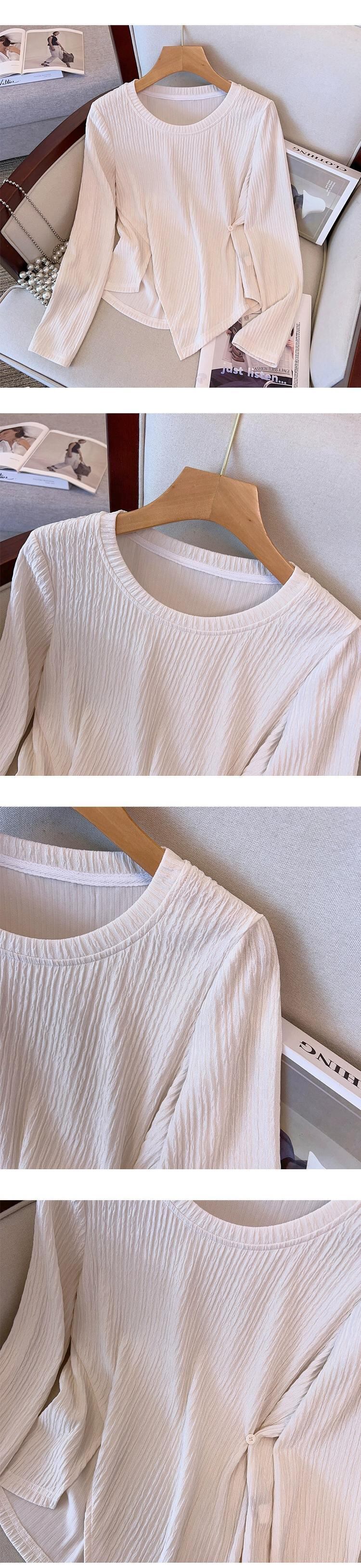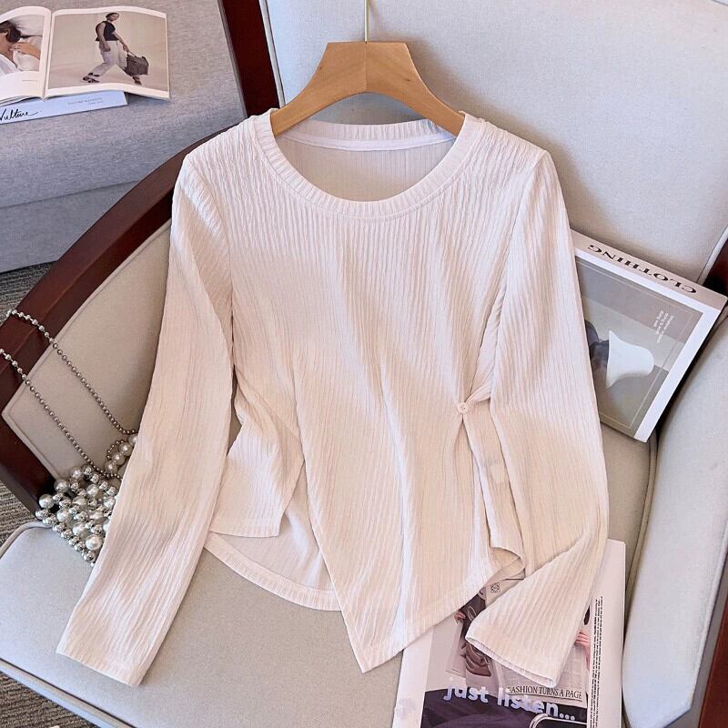 プラスサイズの女性の 2023 トレンディな秋ファットガールラウンドネックソリッドカラートップスリット非対称多用途ウエスタン Tシャツ 大きめサイズ オータム 秋物 Oネック 8884150074797489