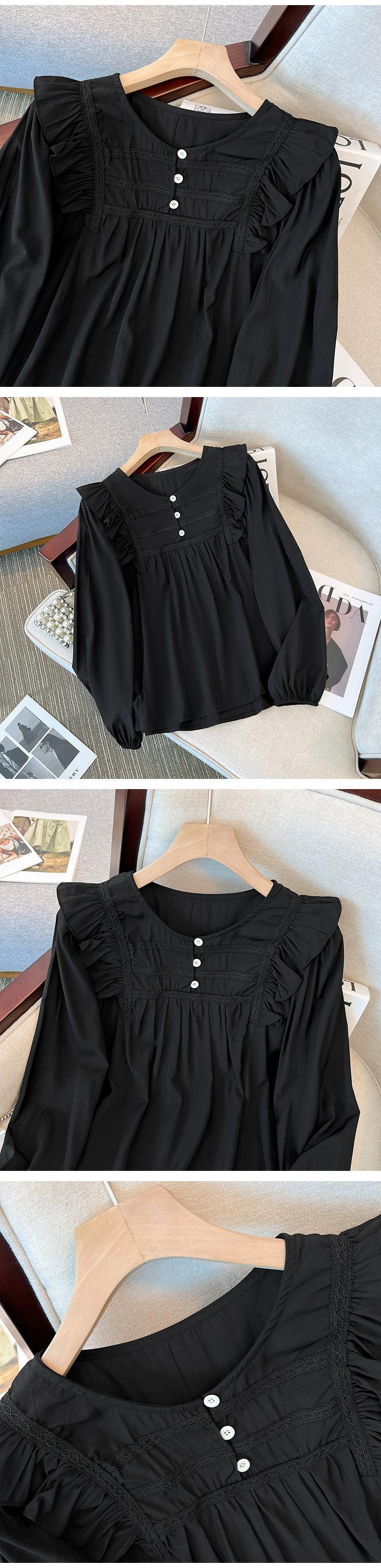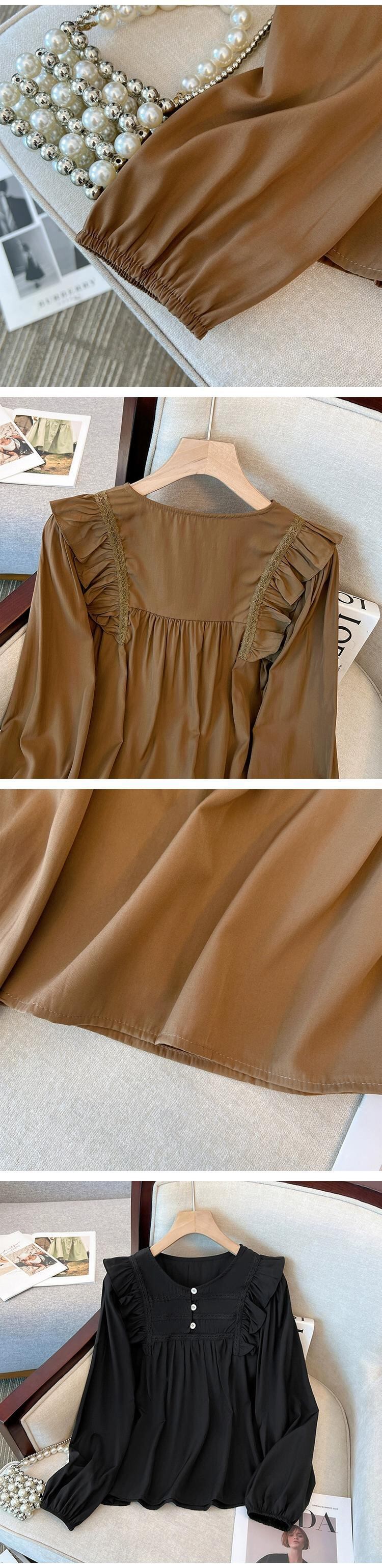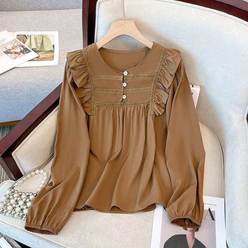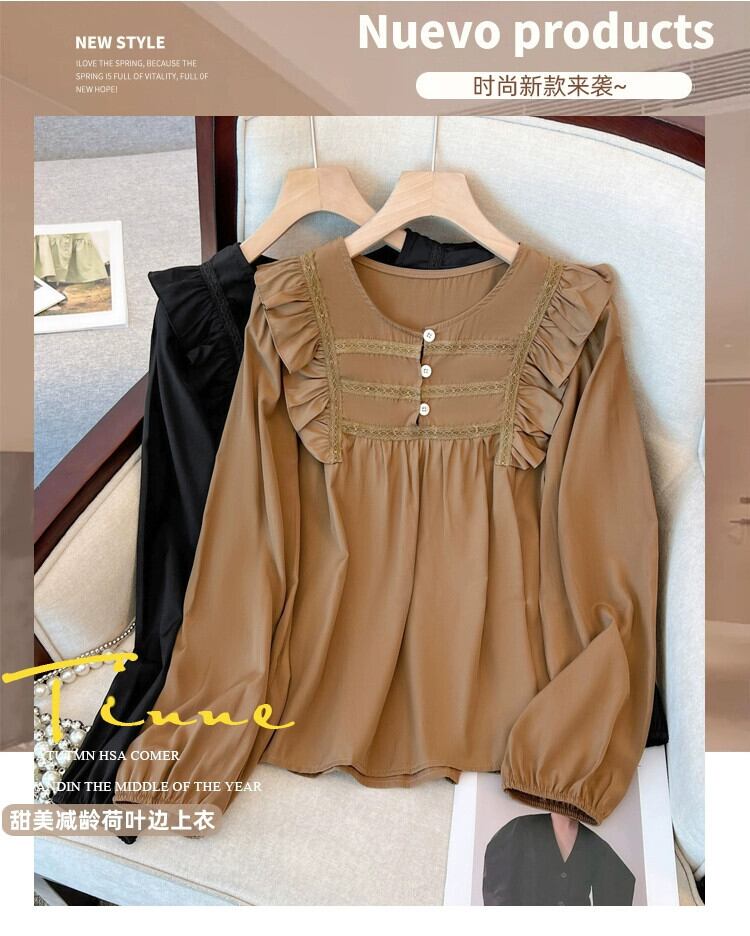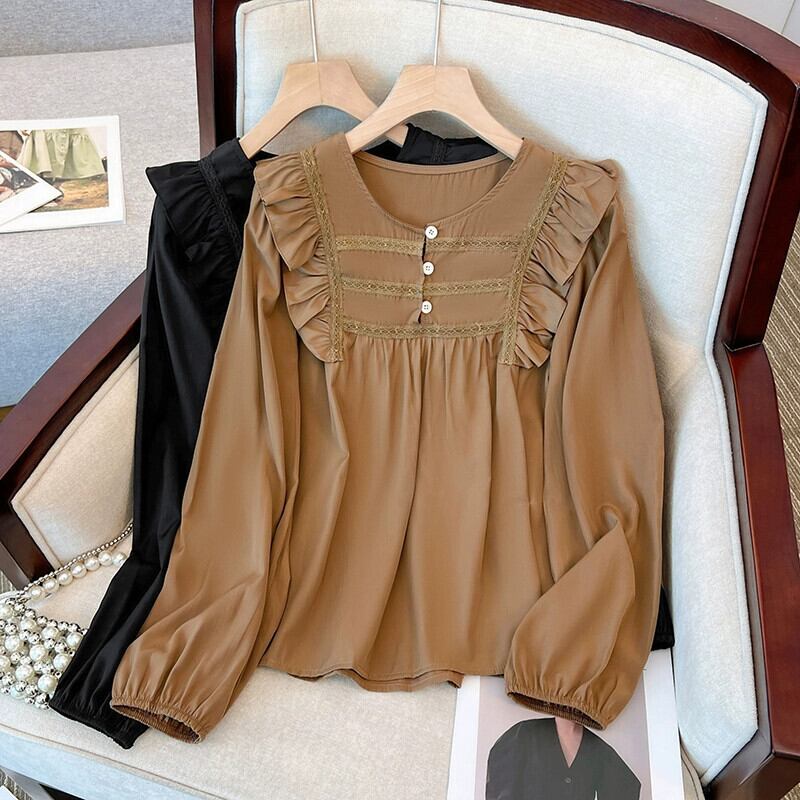 プラスサイズの婦人服 2023 秋服脂肪フランスの年齢を軽減するフリル長袖シャツシックなお腹カバー痩身トップス ロング 大きめサイズ オータム 秋物 8884135882204903