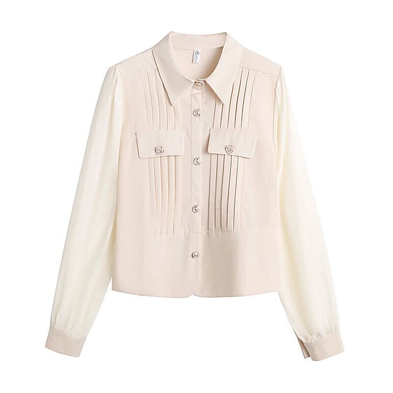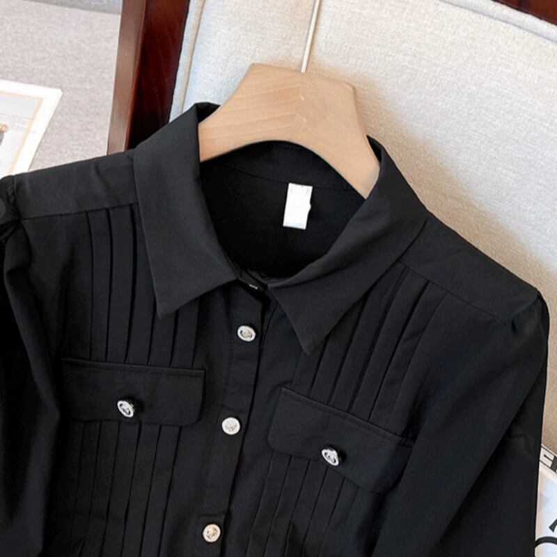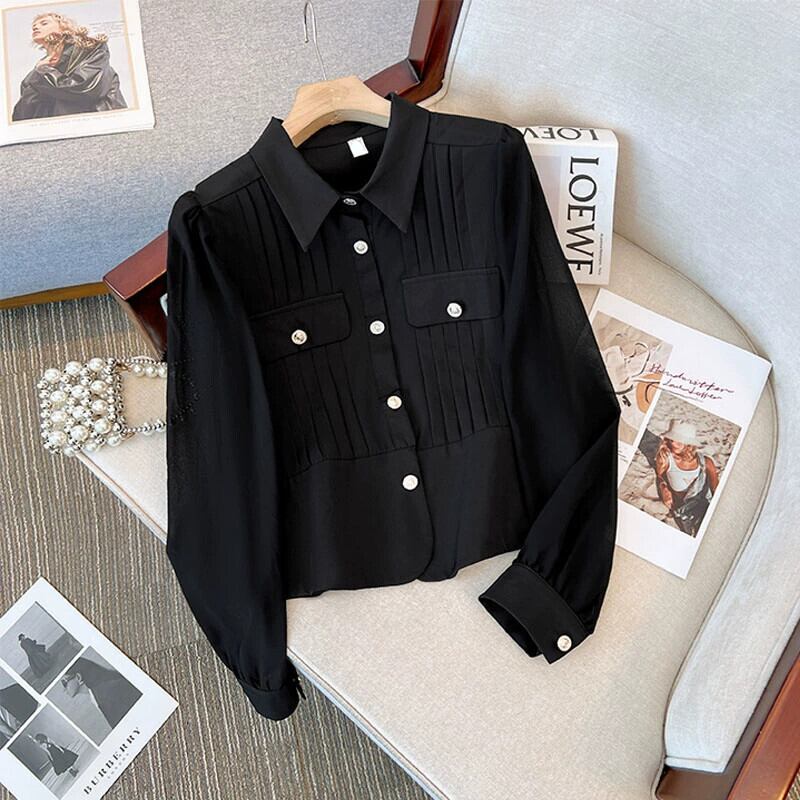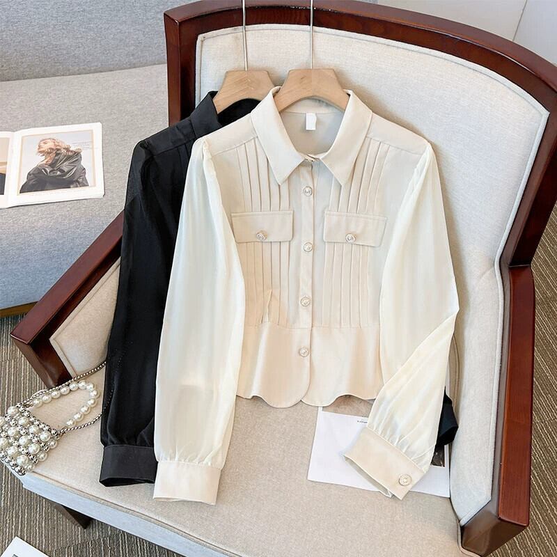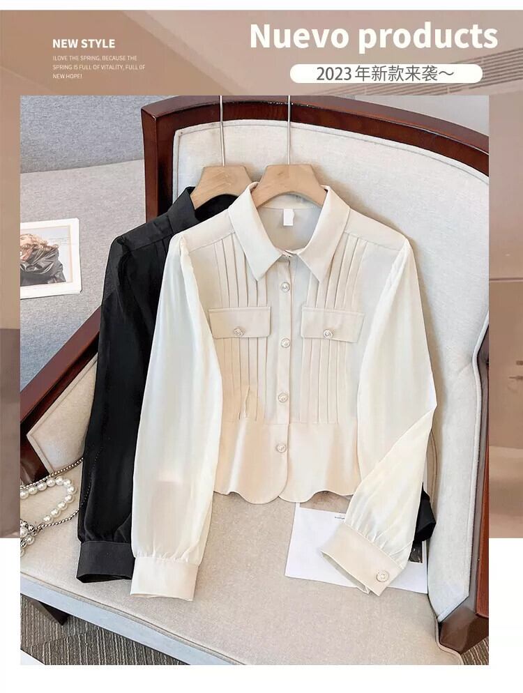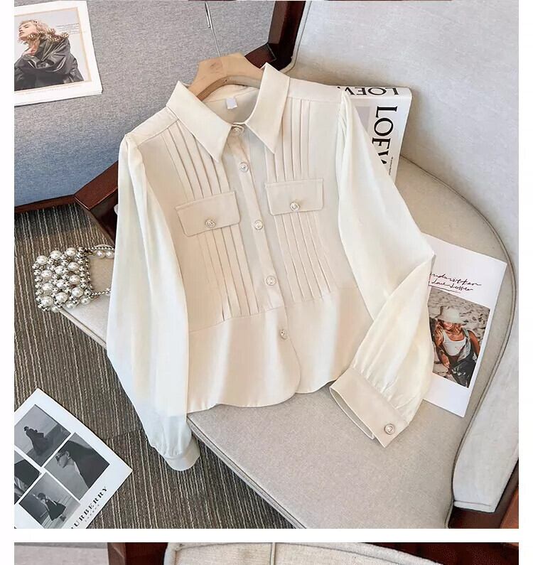 プラスサイズの女性の 2023 秋服脂肪、ファッショナブルな気質、痩身シフォン シャツ、肌をカバー、無地デザイン トップ 大きめサイズ オータム 秋物 ソリッドカラー 8884186308299403