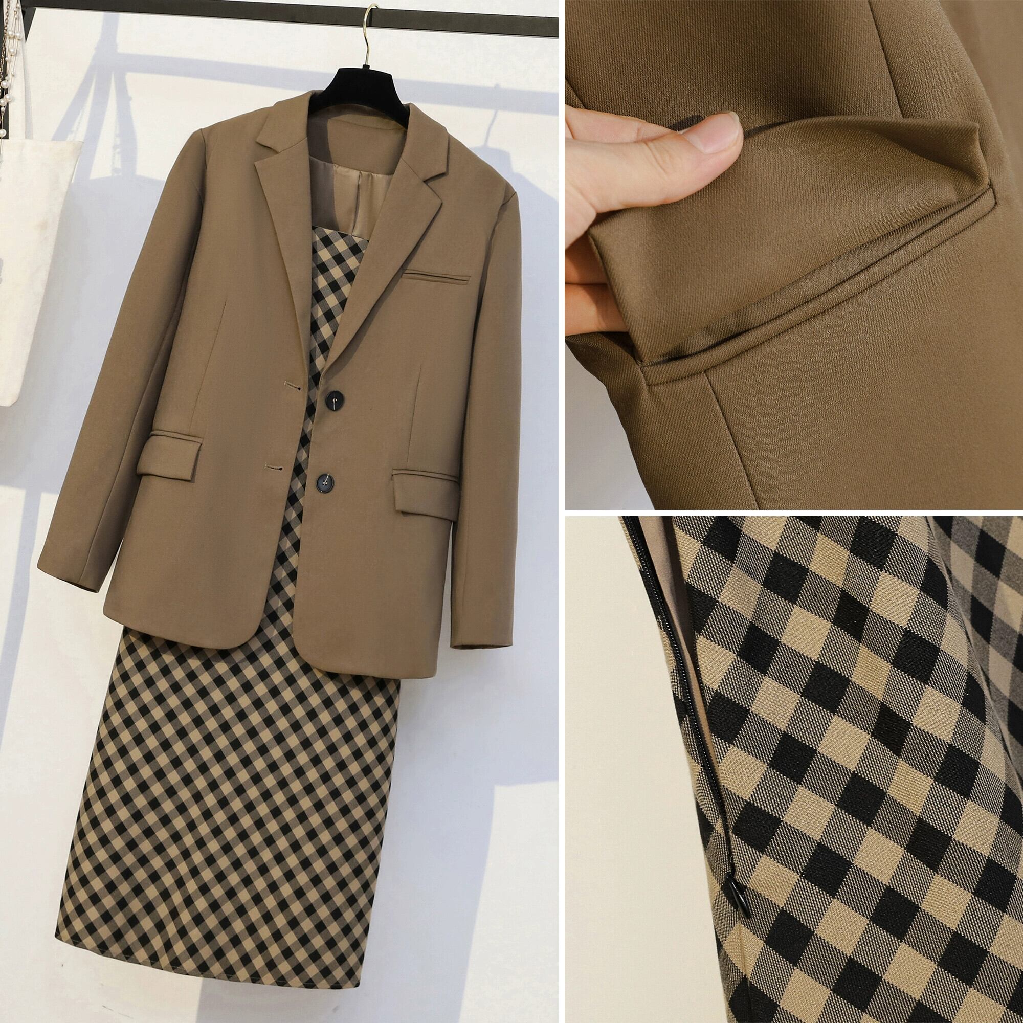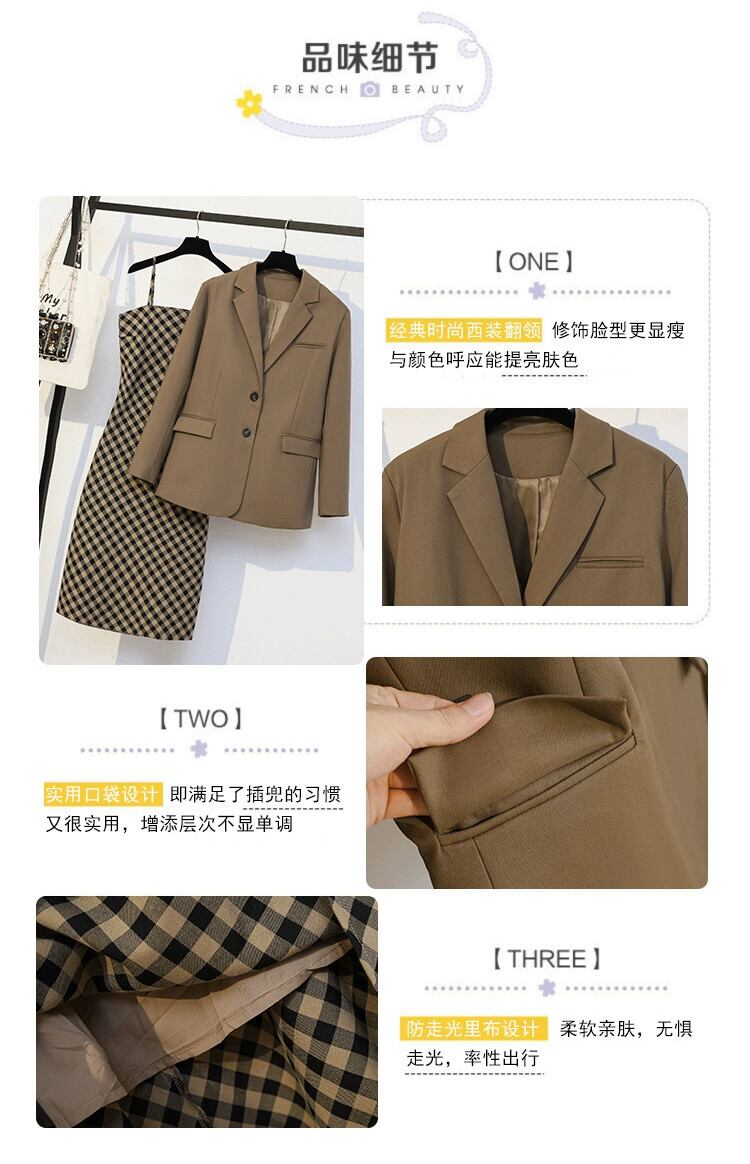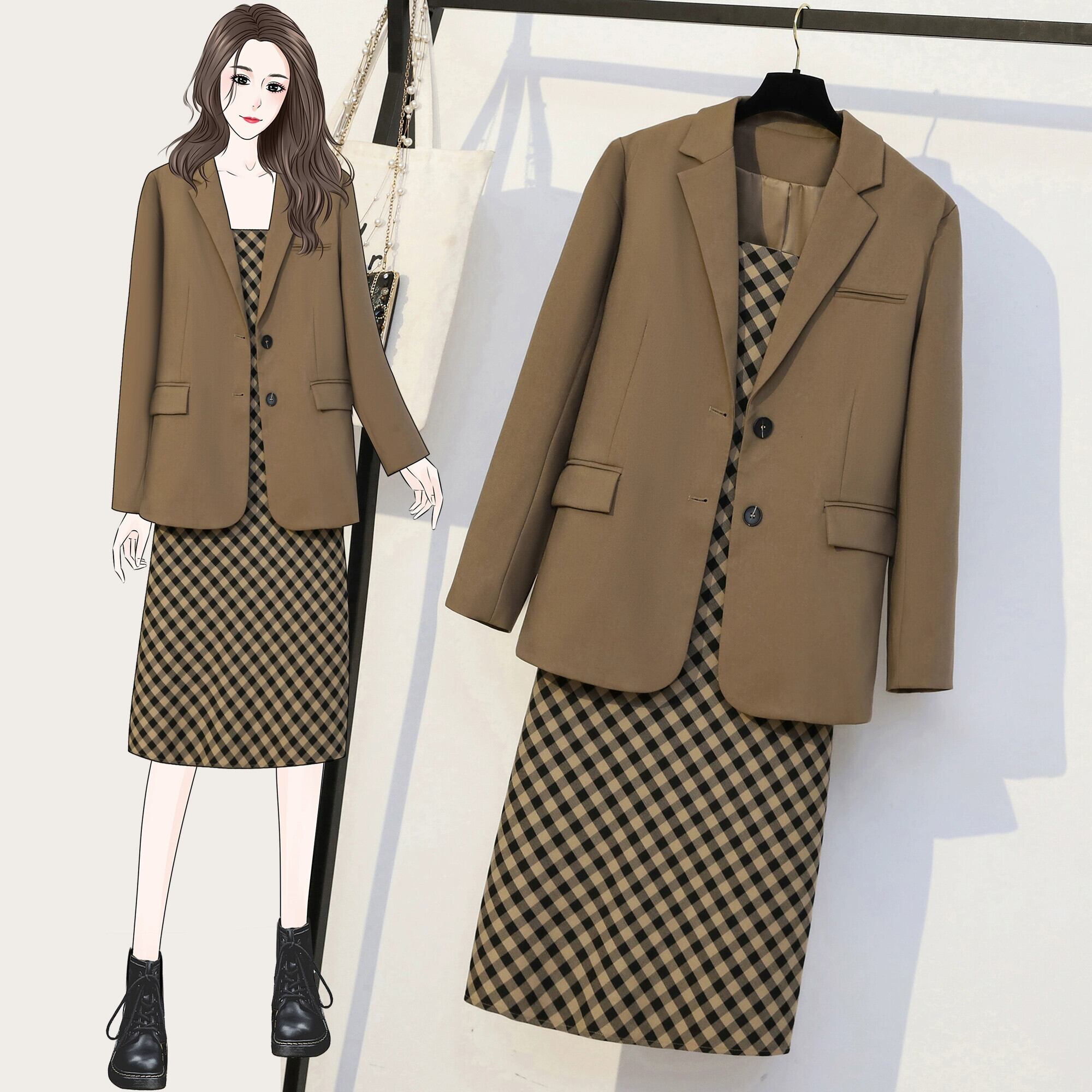 プラスサイズの婦人服 2023 ファットシスター秋服新しい小さなスーツスーツジャケットサスペンダースカートカジュアルツーピースセット 大きめサイズ オータム 秋物 8884187315223123