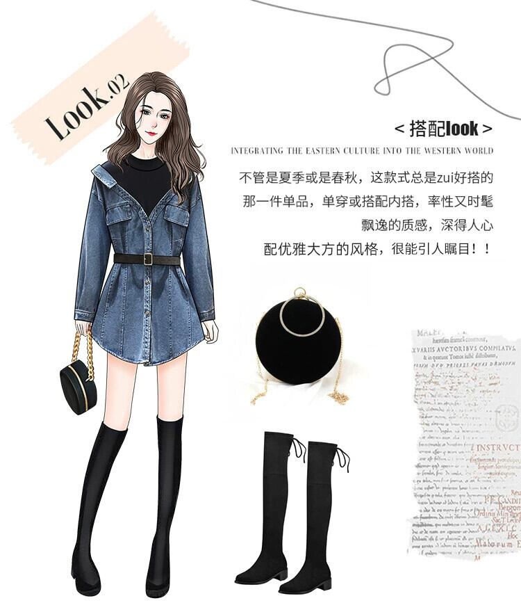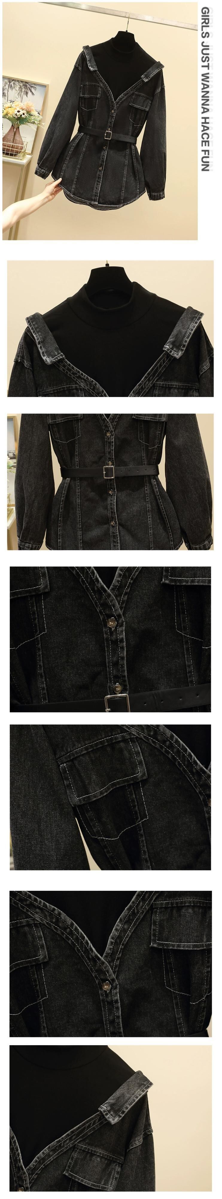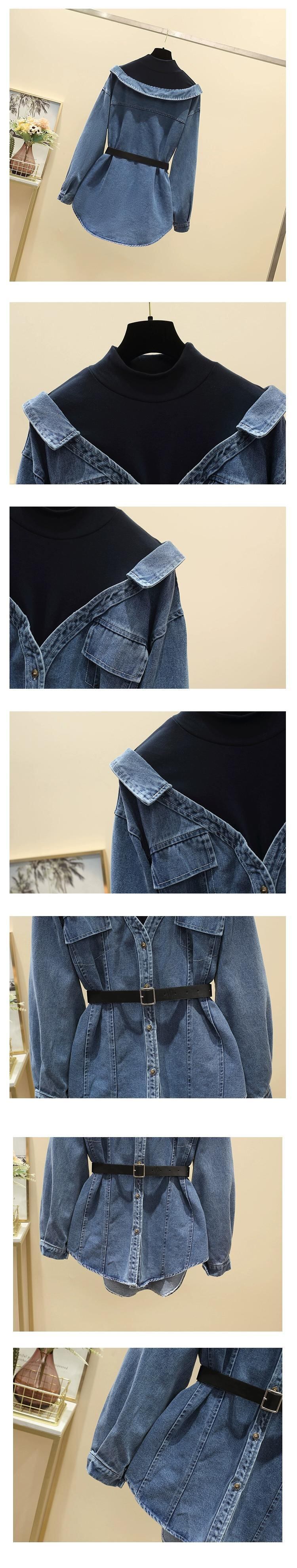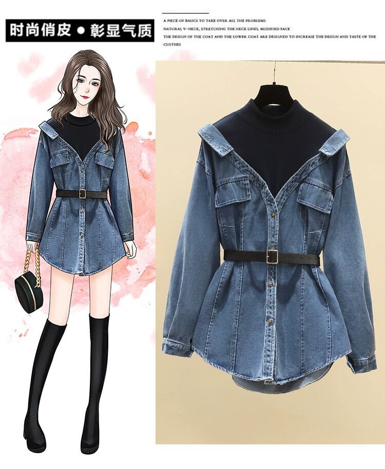 プラスサイズの婦人服 2023 脂肪姉妹秋服新しいファッショントップス痩身気質偽ツーピース長袖デニムシャツ ロング 大きめサイズ オータム 秋物 8884111150652939