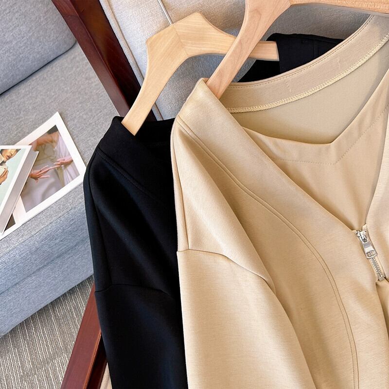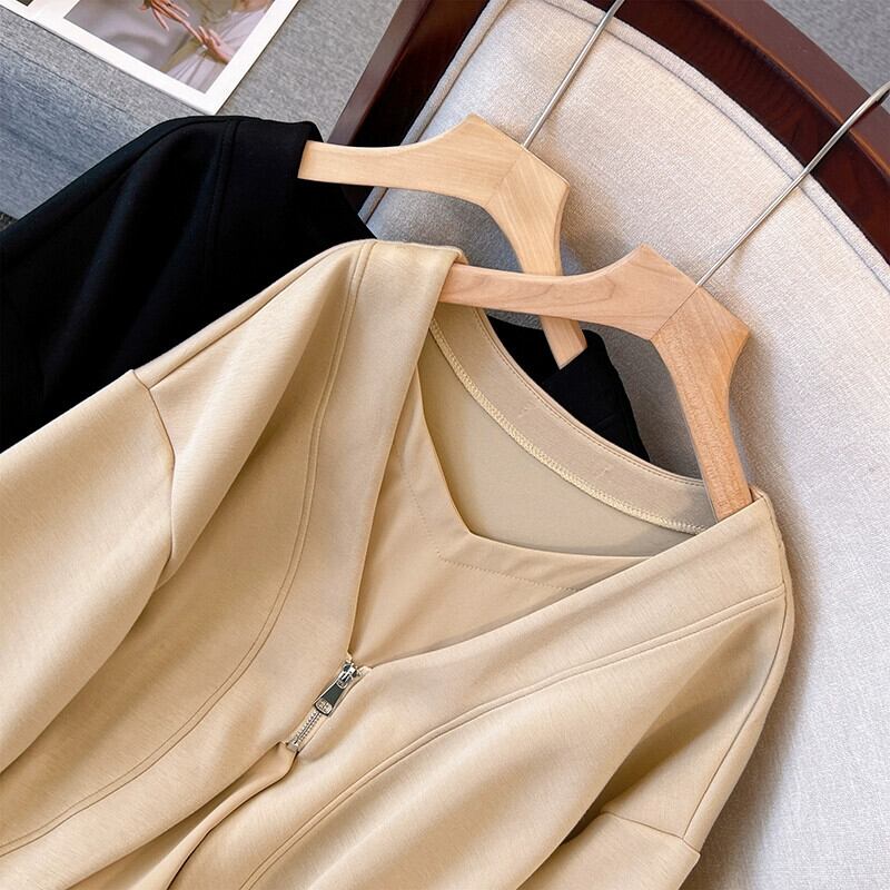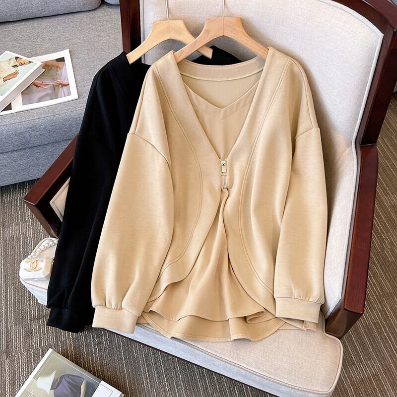 プラスサイズの婦人服 2023 トレンディな秋の新ファットシスタースプライシングスウェットシャツ偽ツーピースデザインルーズ腹カバートップ 大きめサイズ オータム 秋物 8884142357873735