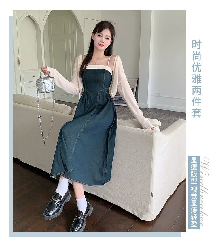 プラスサイズの女性の 2023 秋服ファットシスターは肉をカバーし、スリムに見えるショールカラートップ可能な年齢を減らすサスペンダースカート 2 点セット 大きめサイズ オータム 秋物 8884149998111385