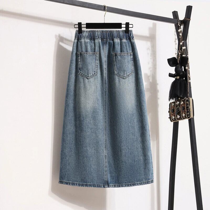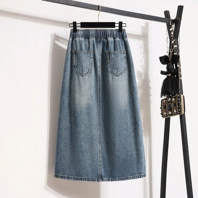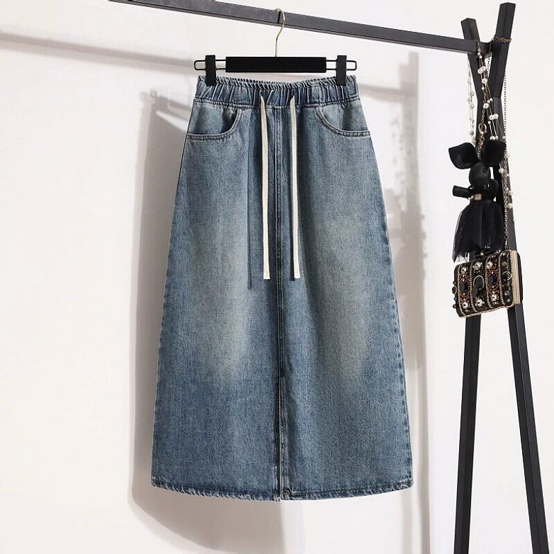 大きいサイズ 2023 秋冬新作 ウエストゴム Aライン デニムスカート スリット ミモレ丈 カジュアル デニムスカート エラスティック 伸縮 大きめサイズ サマー 夏物 オータム 秋物 8884176045842439