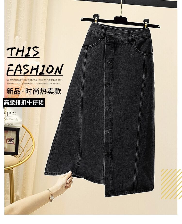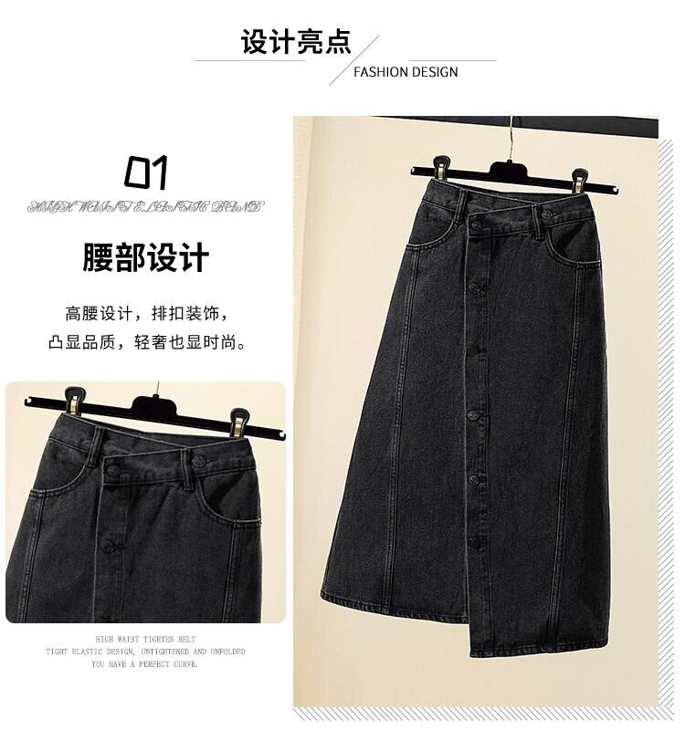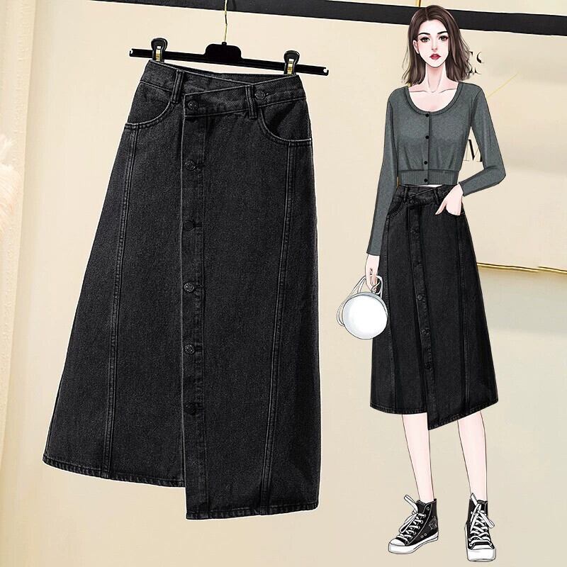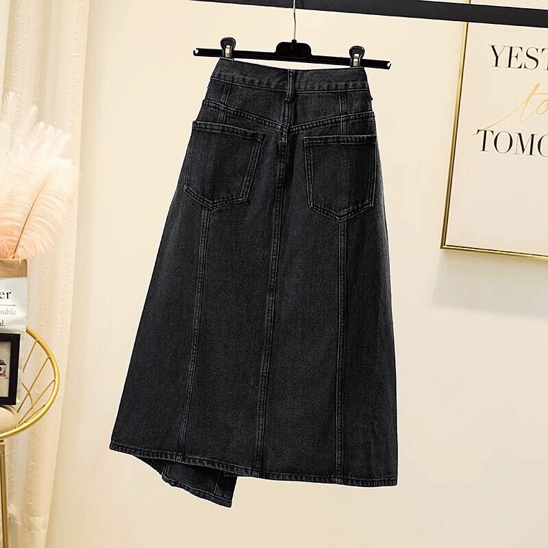プラスサイズの婦人服 2023 トレンディな秋の新スタイルファットインスタイルハイエンドデニムスカートニッチ不規則な A ラインスカート 大きめサイズ オータム 秋物 Aライン 8884173561303905