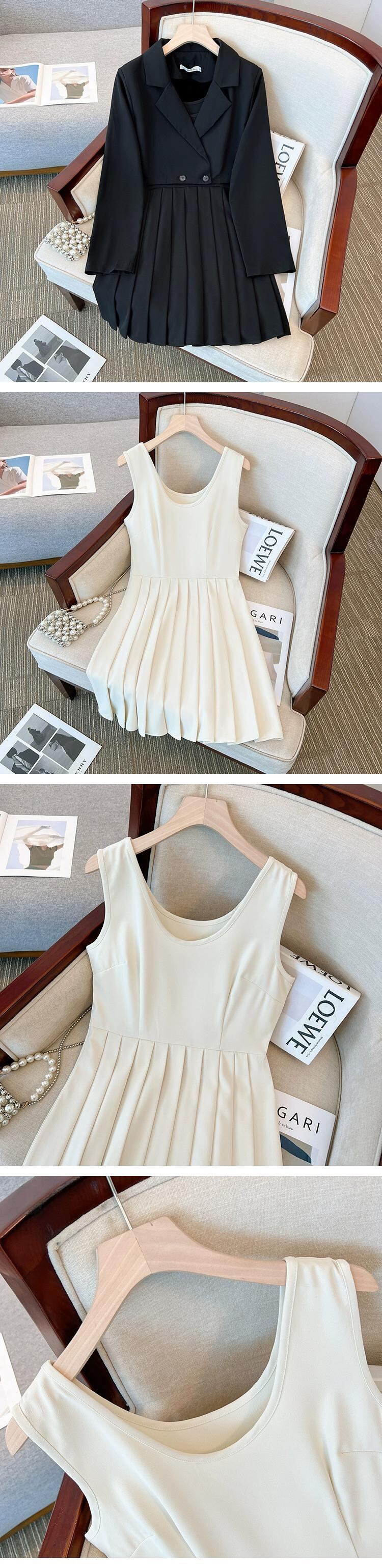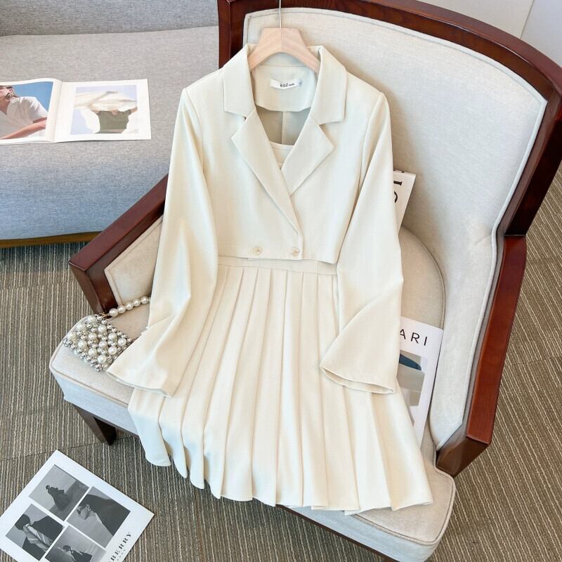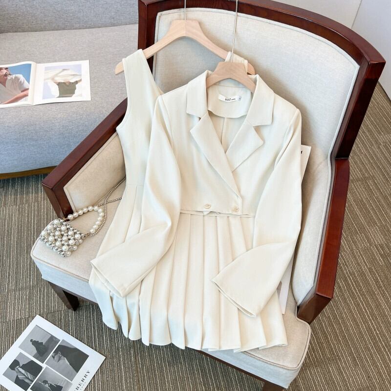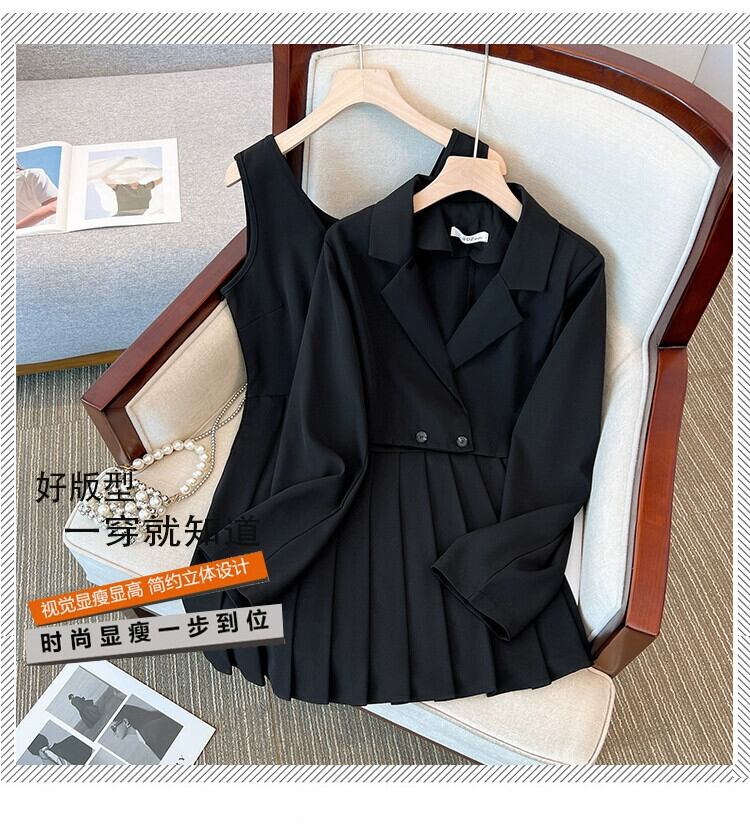 プラスサイズの婦人服 2023 ファットシスター秋の新ベストプリーツドレス洋風スーツブレザー 2 点セット 大きめサイズ オータム 秋物 8884122992351656