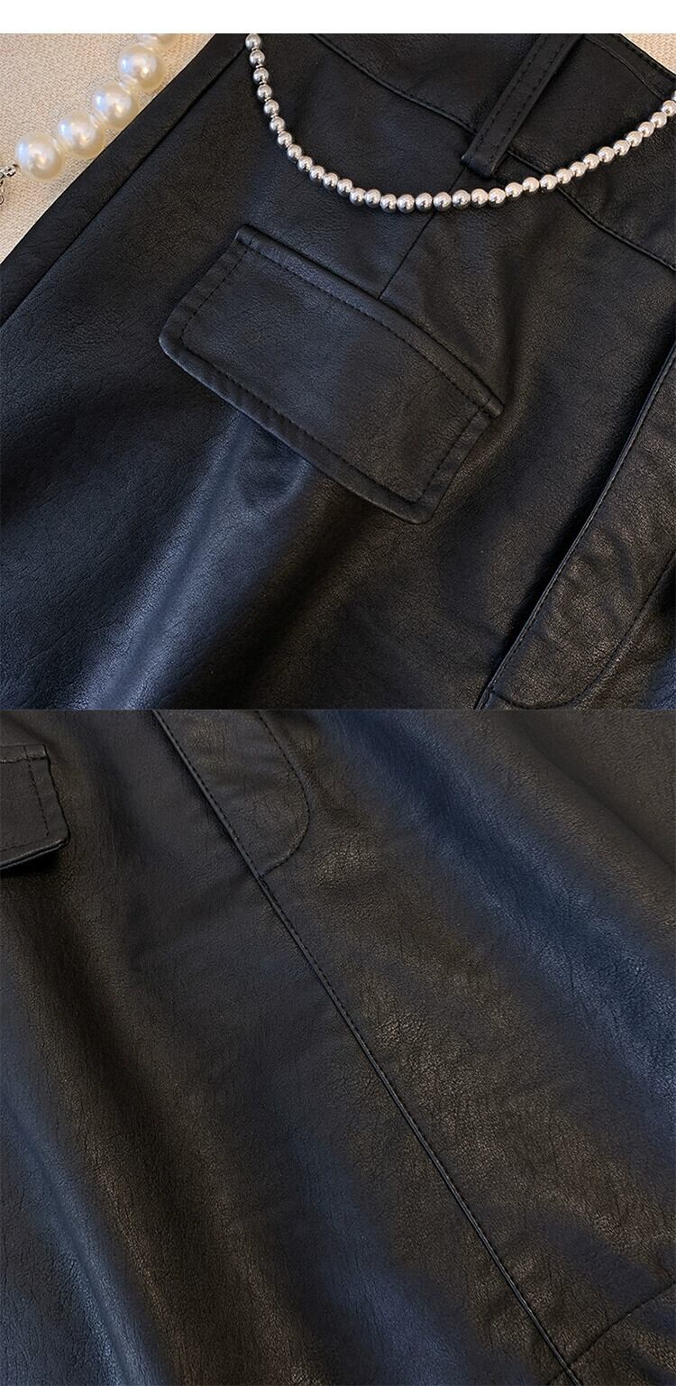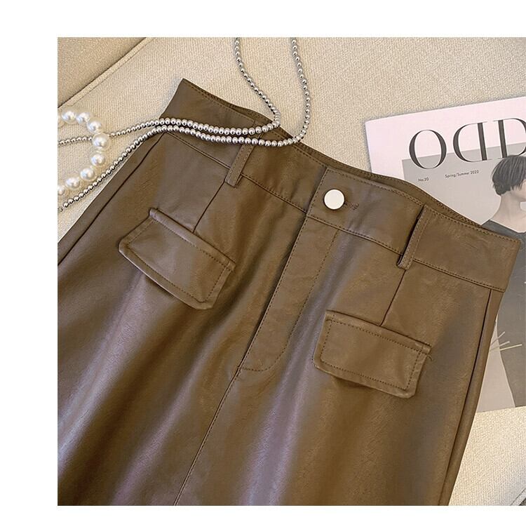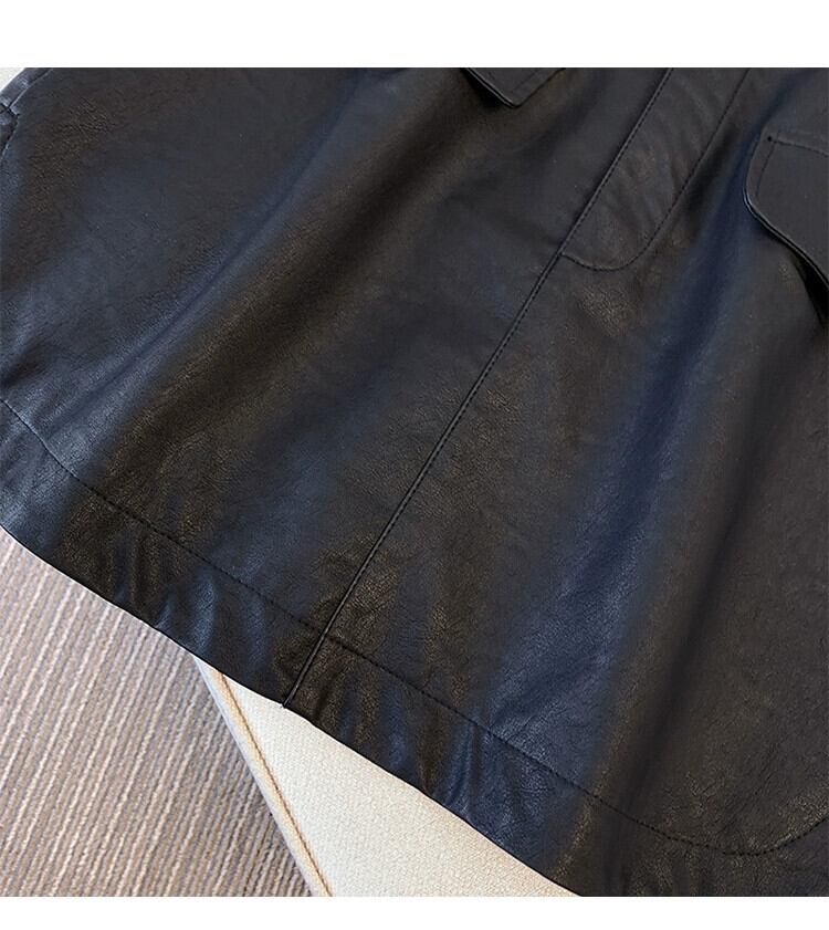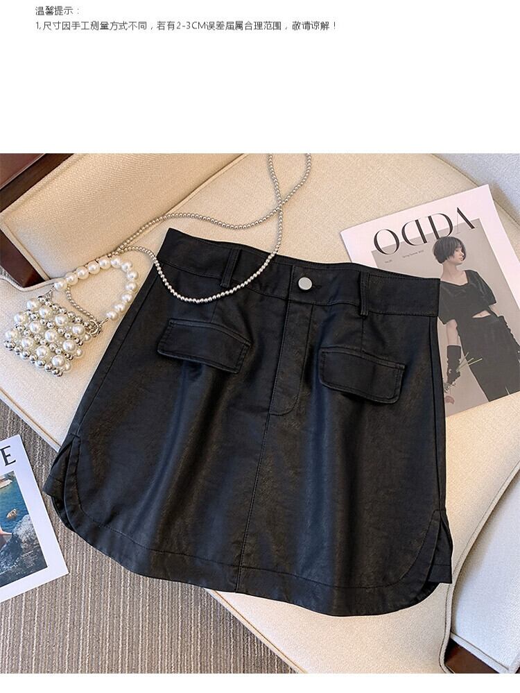 プラスサイズの婦人服 2023 脂肪姉妹秋の新ファッションスカート多用途痩身脚長スリット PU レザーショートスカート 大きめサイズ オータム 秋物 8884125708498260