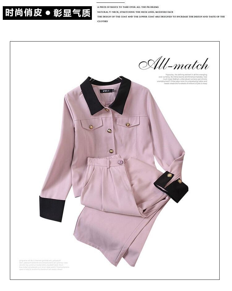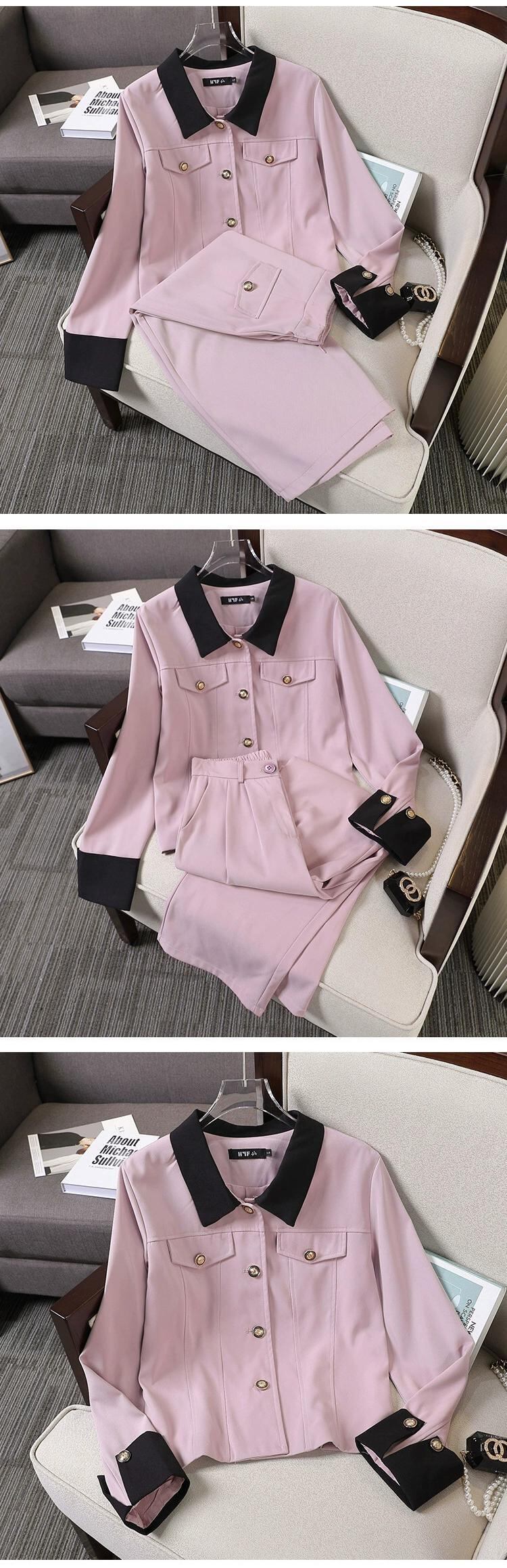 プラスサイズの婦人服 2023 トレンディな秋の新ファットシスター多用途スーツスーツジャケットスカートストレートパンツ 2 点セット 大きめサイズ オータム 秋物 8884178770845991