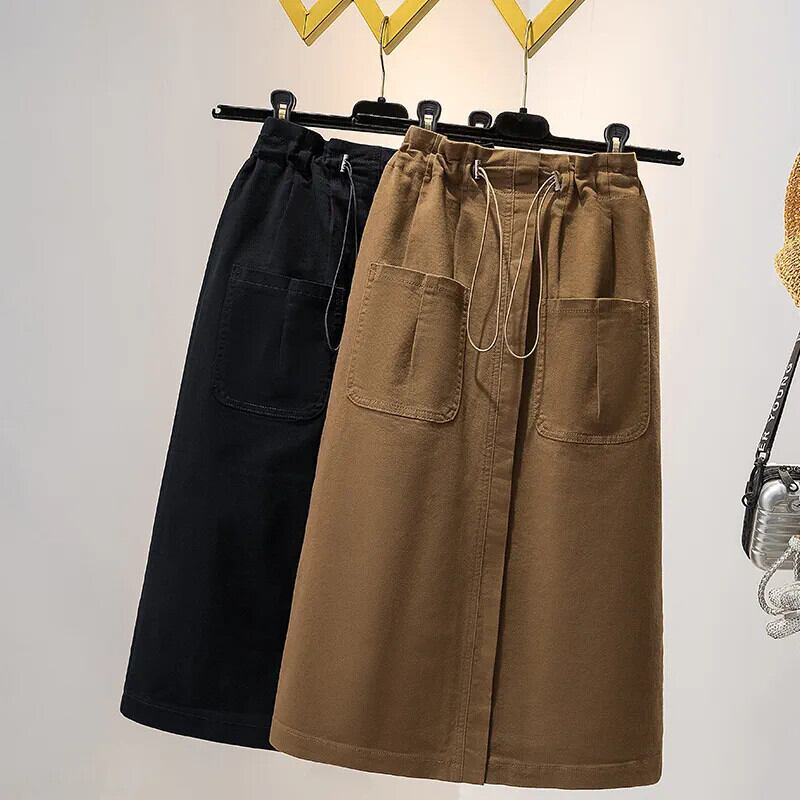 プラスサイズの女性の 2023 ファットシスター秋弾性デニム作業服スカート可能スリムルーズロングスカート エラスティック 伸縮 大きめサイズ オータム 秋物 8884141499797729