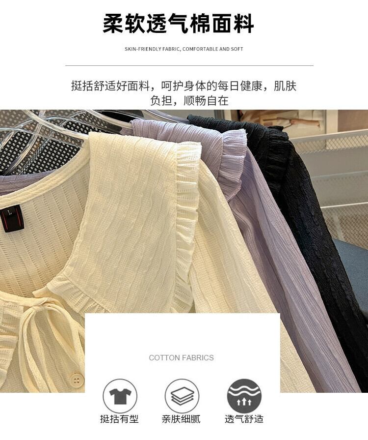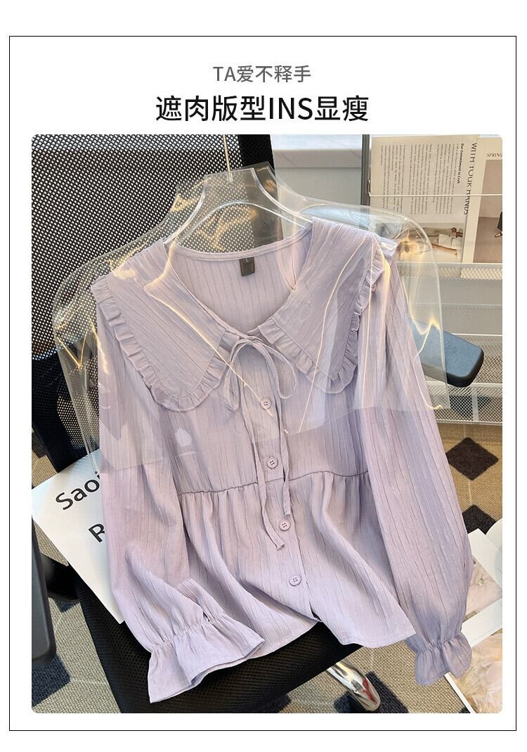 プラスサイズの婦人服 2023 トレンディな秋の新しい脂肪気質真菌エッジ人形襟トップテクスチャー長袖シャツ ロング レッド 大きめサイズ オータム 秋物 8884190002627771