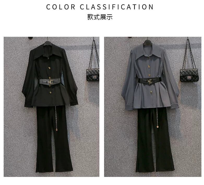 プラスサイズの婦人服 2023 トレンド秋の新ファットシスタースリム万能スーツハイエンドシャツワイドレッグパンツ 2 点セット 大きめサイズ オータム 秋物 8884147749239475