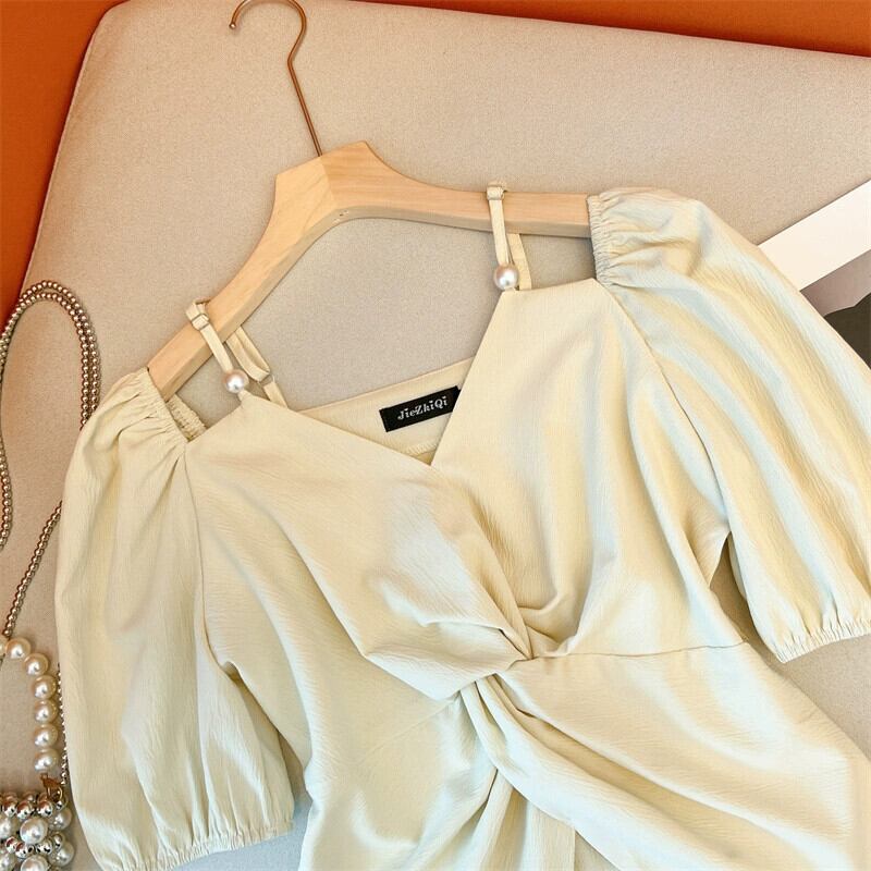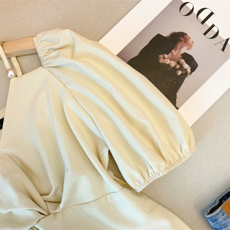 半袖シャツプラスサイズの女性の夏脂肪姉妹 2023 フレンチシックなワンショルダー痩身お腹カバー美しいシフォントップ 大きめサイズ サマー 夏物 8884167486280491