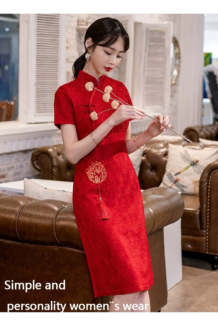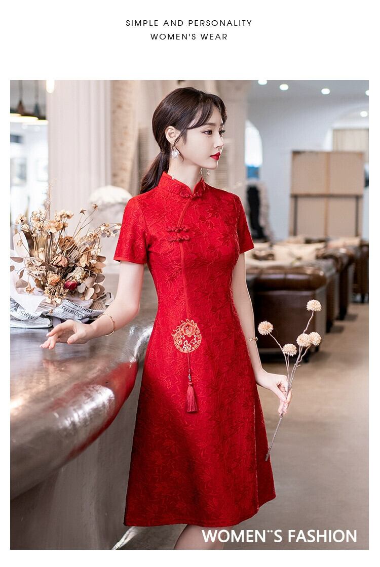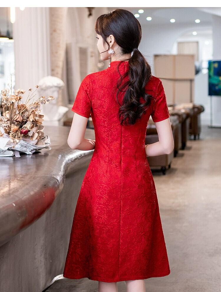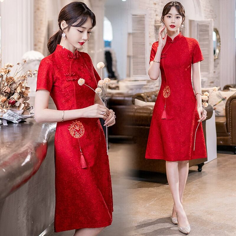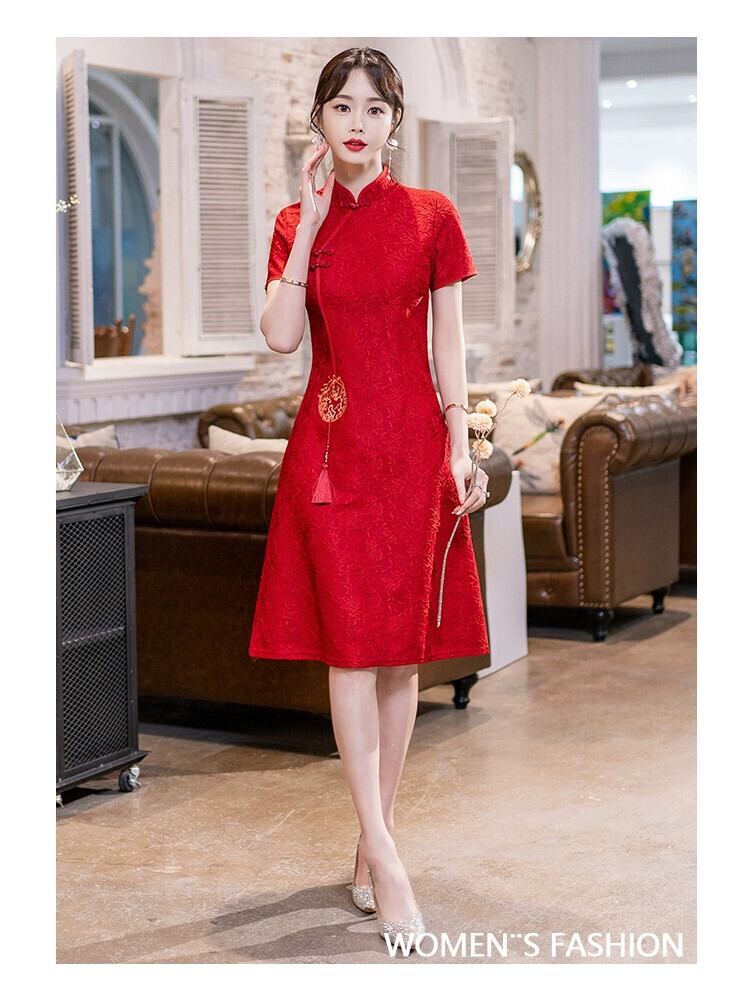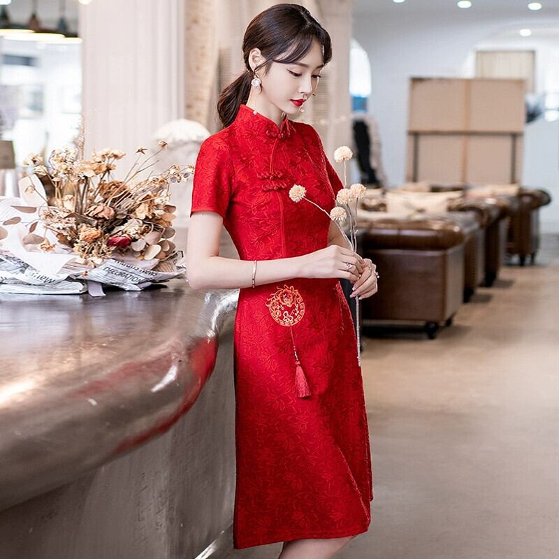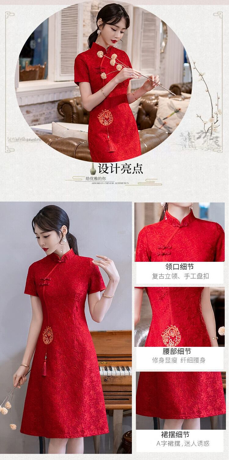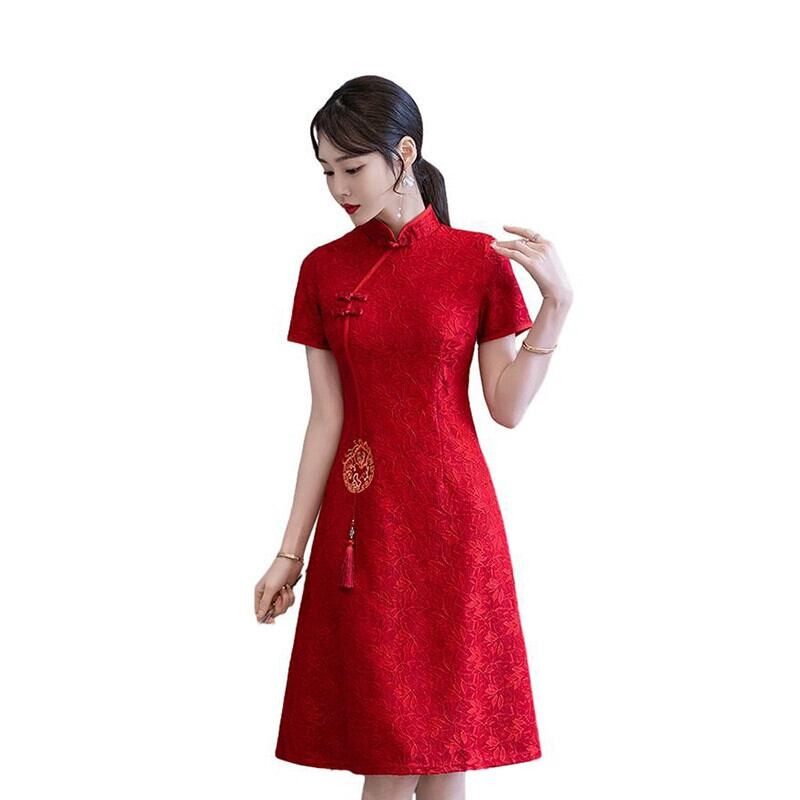 プラスサイズの女性の夏服新しい脂肪痩身気質改善チャイナドレスファッショナブルなウエストレッドトーストドレス 大きめサイズ サマー 夏物 8884137759429188